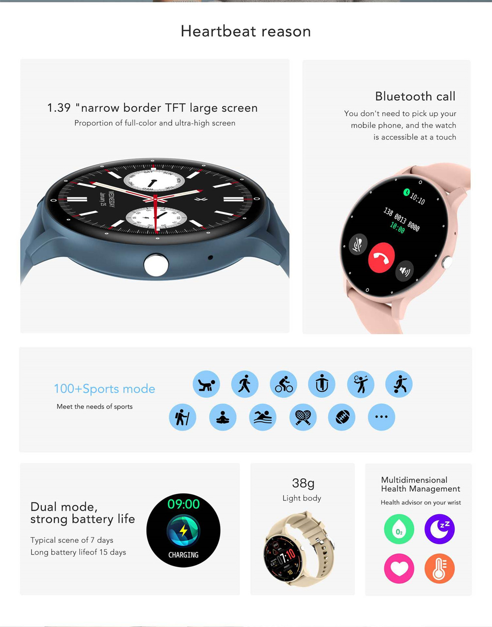 1. Full-color Ultra-high Screen Ratio, 1.39-inch Narrow Border TFT Large Screen