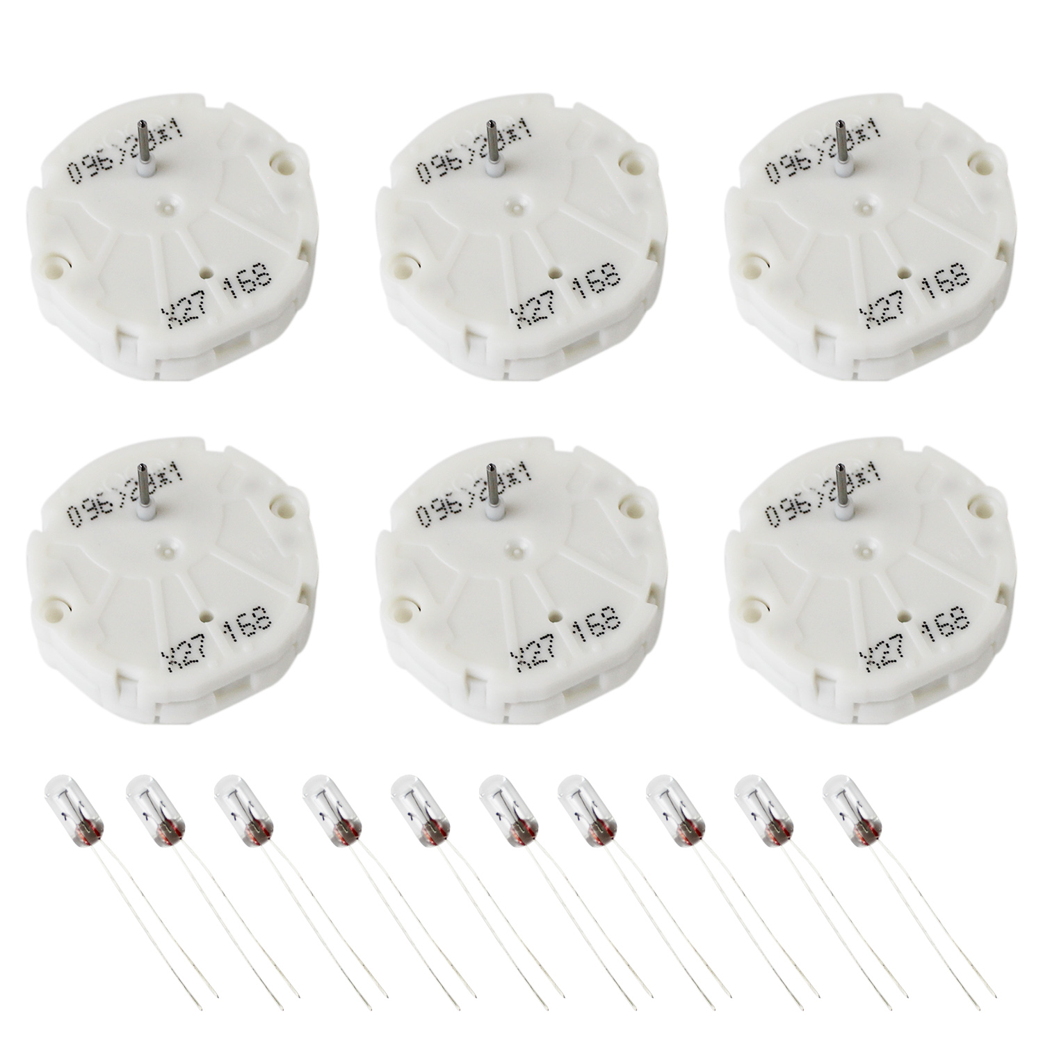 This listing is for 6 (six) X27.168 GM and Chevy stepper motors and 10 (ten) 4.7mm 100mA speedometer bulbs.
