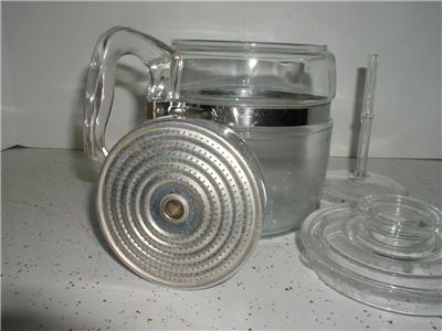 Vintage 1940s PYREX Flameware 6 Cup Glass Coffee Pot Percolator. Excellent condition as shown but missing the metal lid to the coffee container.
