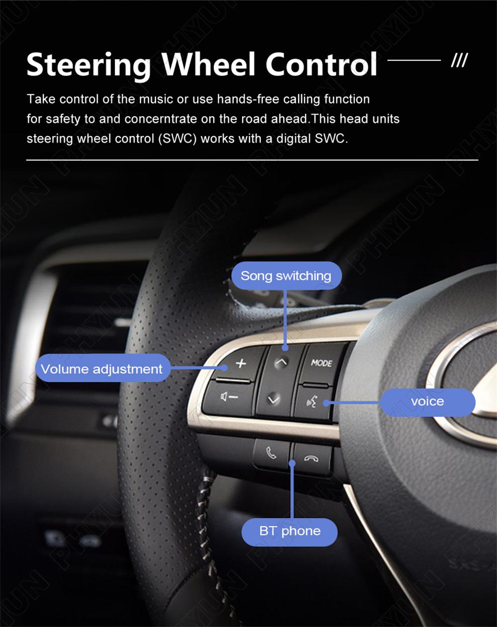 1) Support Steering Wheel Control, front camera, rear camera(can support HD AHD camera as well)