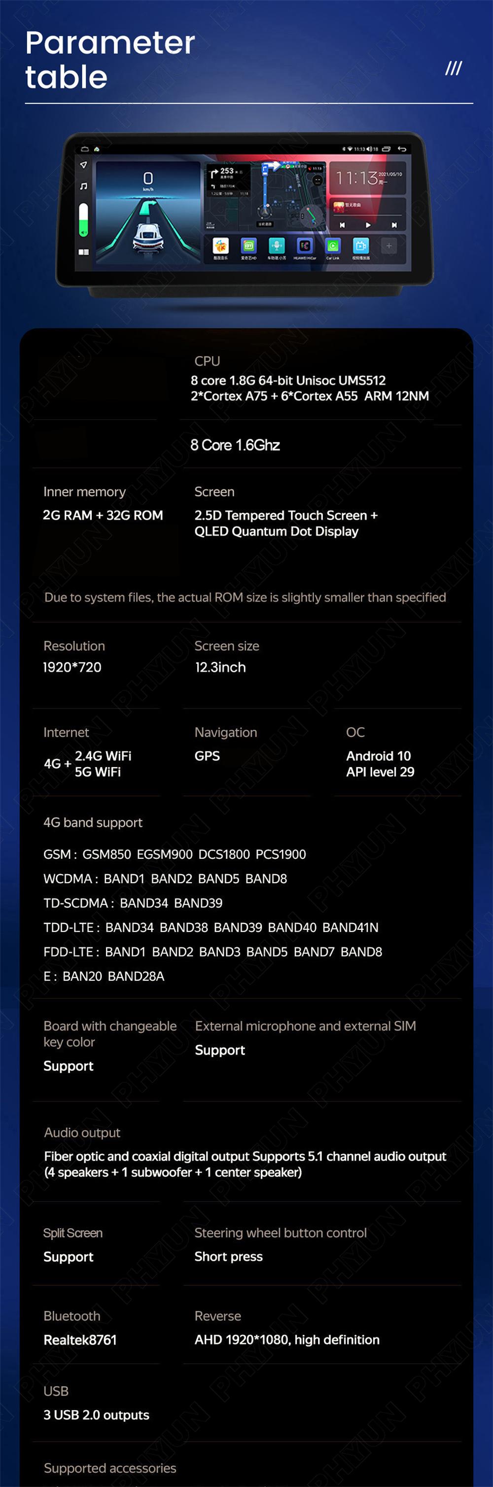 Screen Resolution:1920*720, 2.5D Tempered Touch Screen+QLED Quantum Dot Display