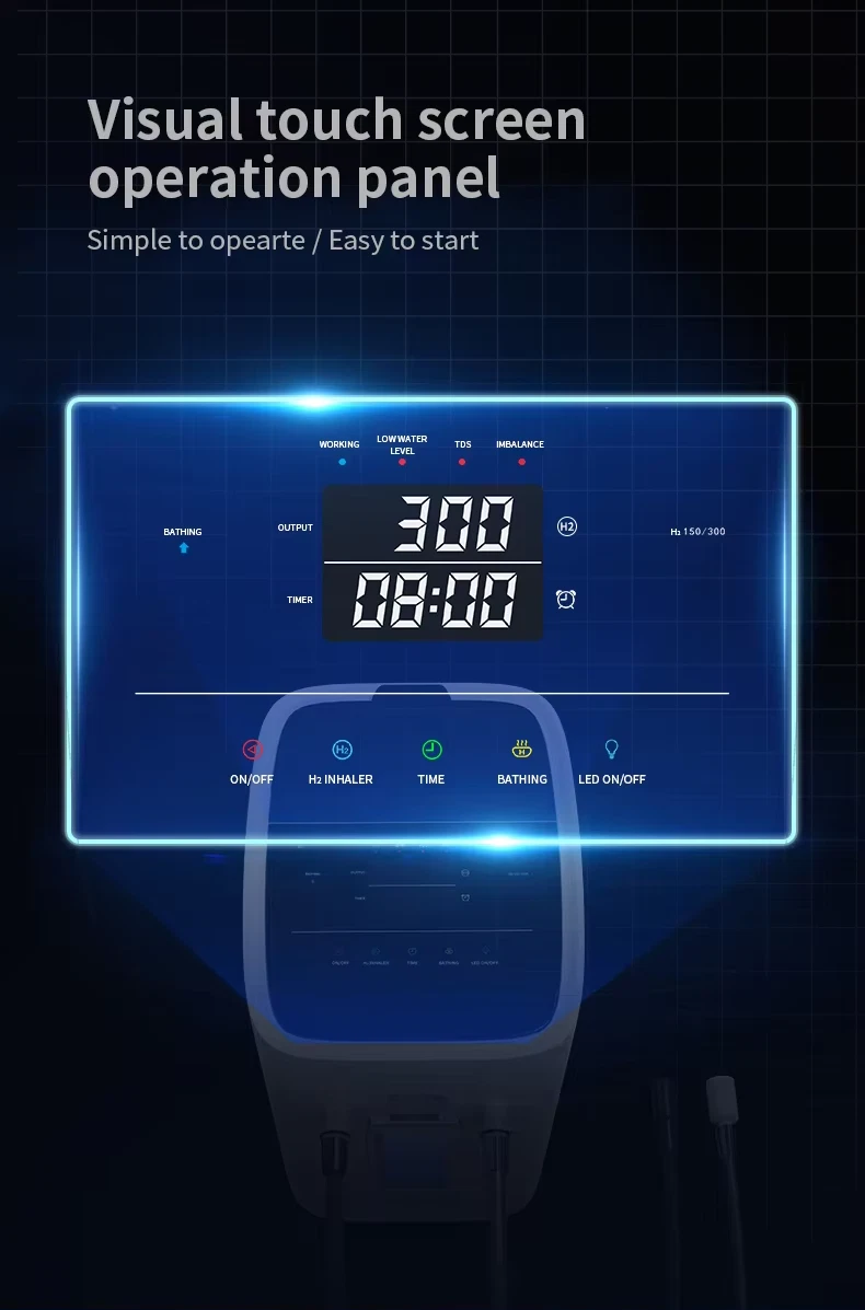 This hydrogen bath machine can provide 300 ml of pure hydrogen inhalation or 450 ml of hydrogen and oxygen inhalation. It can also electrolyze hydrogen water for bathing. The machine comes with wheels, making it more convenient to carry.Compared with traditional hydrogen inhalation machines, this machine is more cost-effective. It is a hydrogen inhalation and hydrogen bath integrated machine with more complete functions.
