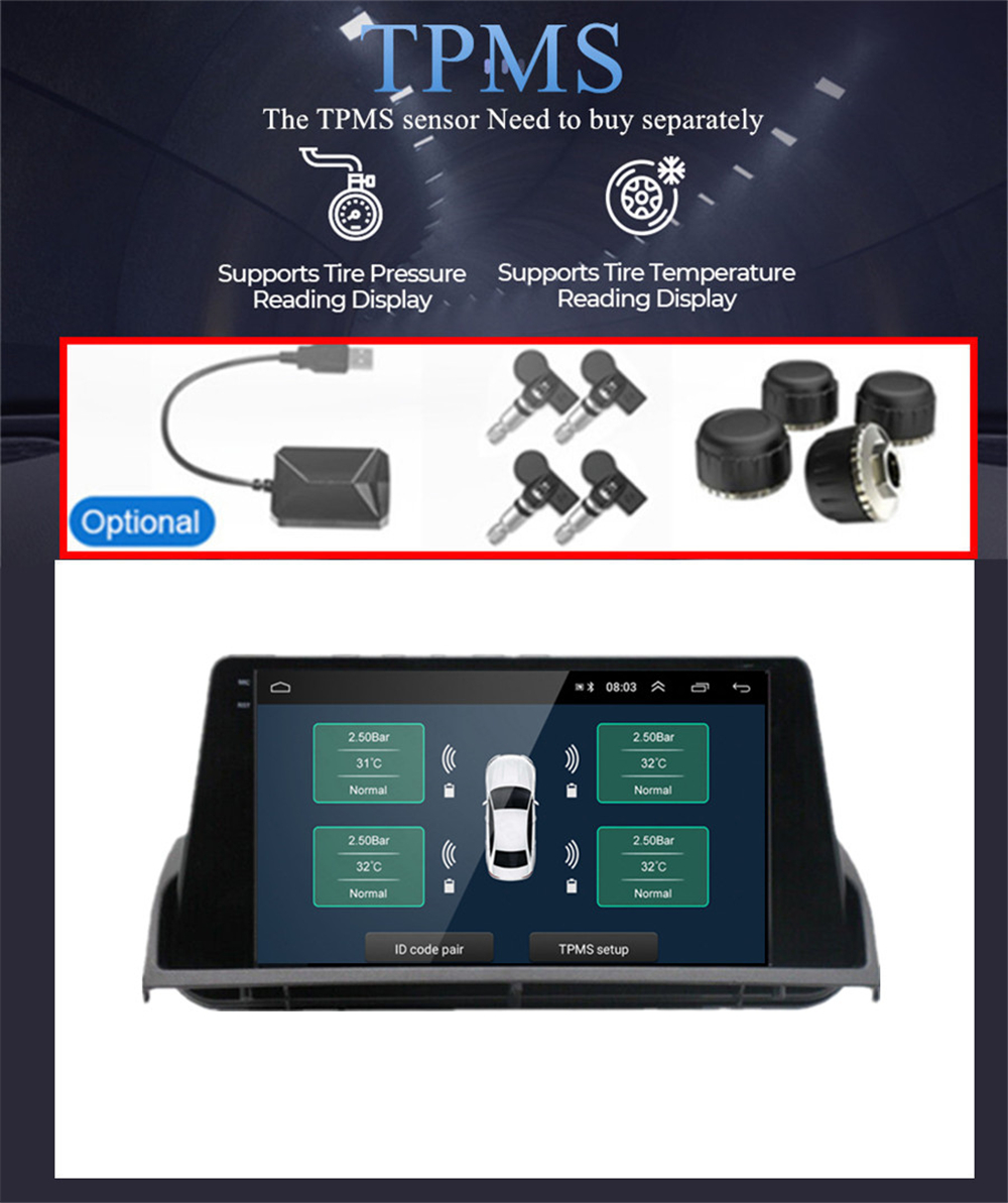 - Textbook: Could change font, font color, background color, bookmark, reading E-book while listening music - Photo Viewer: Support JPS, BMP, PNG, GIF etc. format. play by revolve, Powerpoint Support 4096*4096 Pixels - Wallpapers: 5 live wallpapers, 17 standard wallpapers, support DIY wallpaper from Gallery - APK Installer: Support Android Package installer - Support Torque Pro(OBD2 &Car): Yes, you can connect a Bluetooth/WIFI OBD2 Scanner Tool(Bluetooth version ≥ 4.2) to use this function - Support Mirror Link function: Yes, support WIFI screen mirroring from iPhone and android smartphone - Support TPMS: YES (Not Included) -Support Steering Wheel Control;Yes |