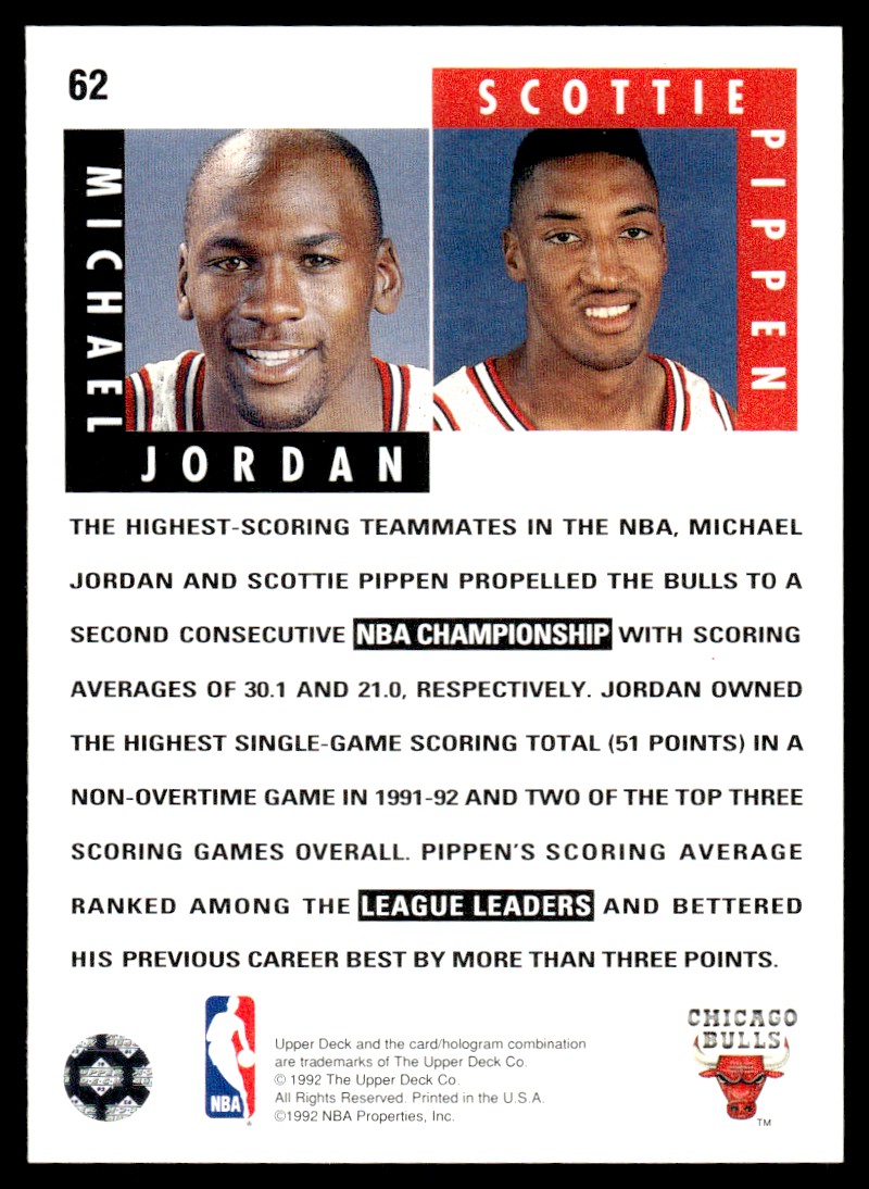 1992-93 Upper Deck Michael Jordan/Scottie Pippen Chicago Bulls #62