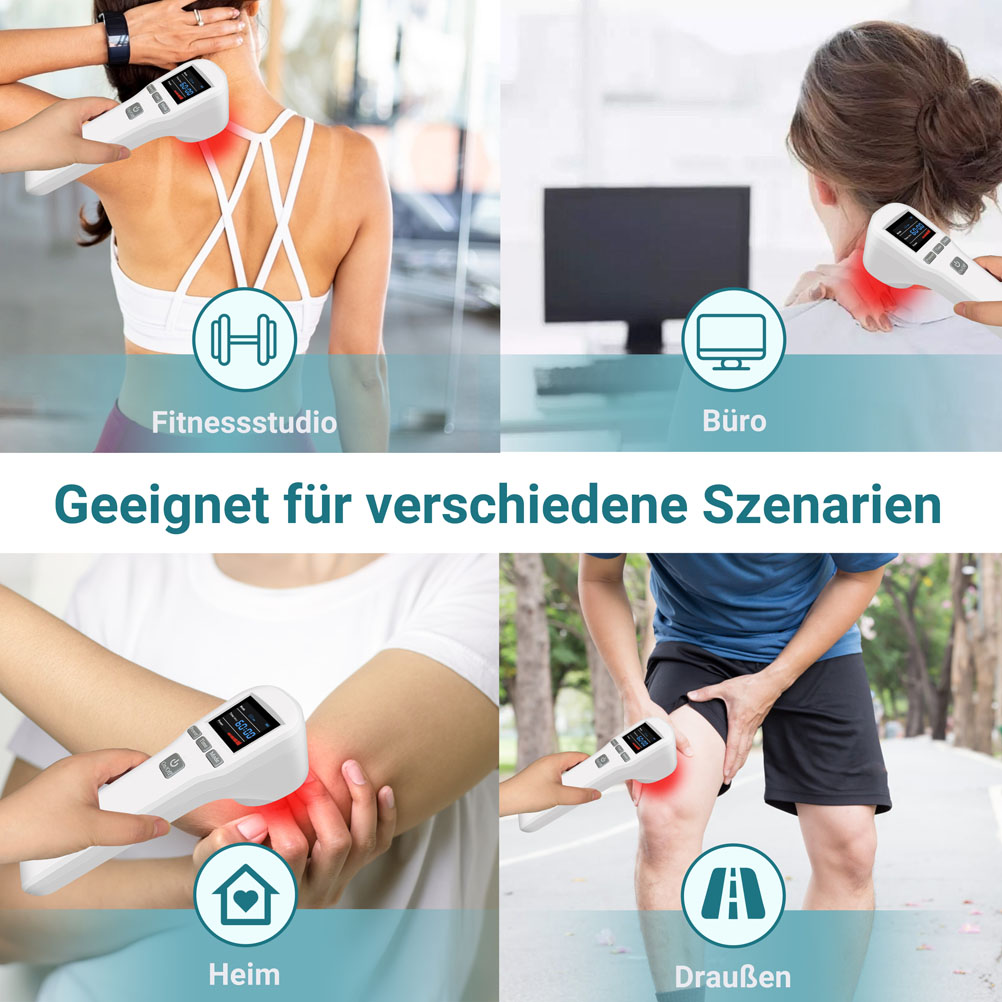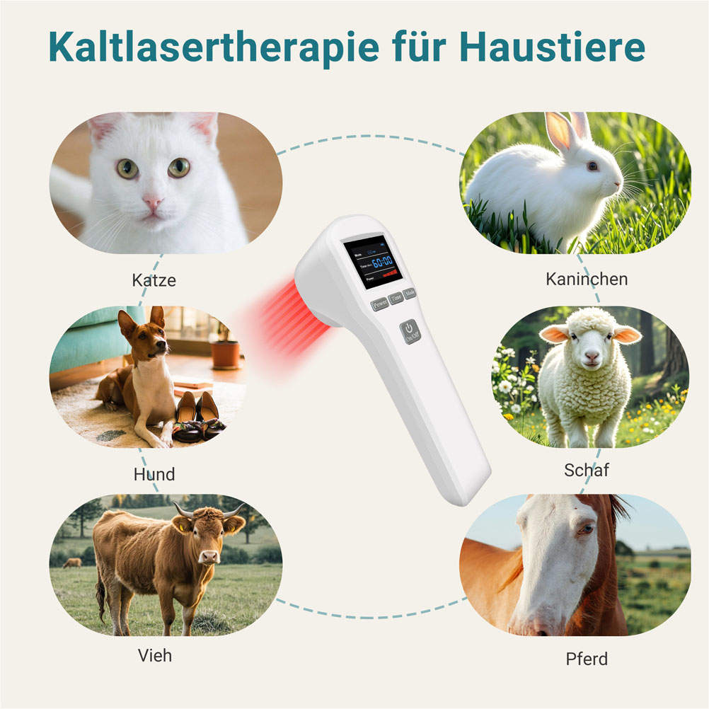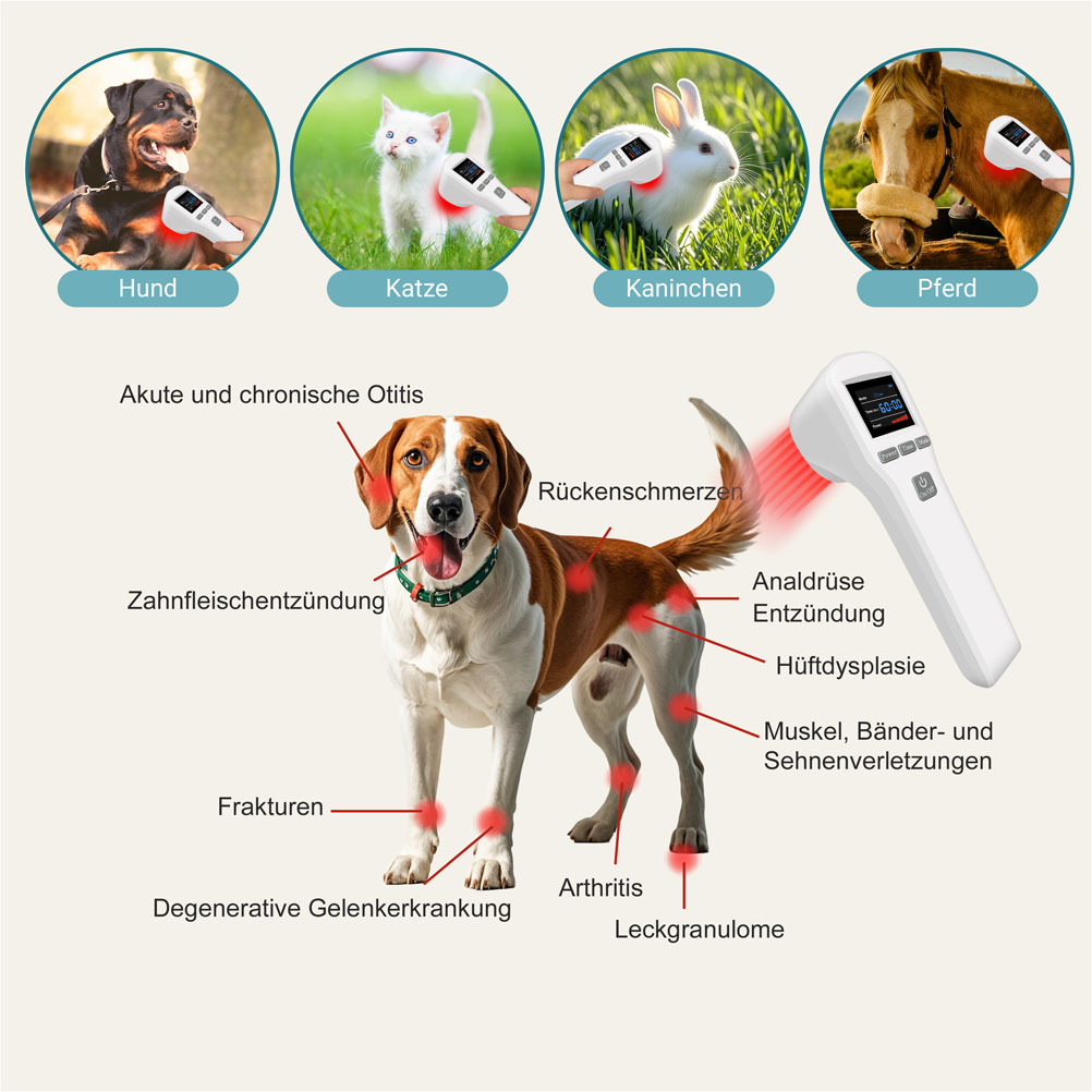 【Anwendungen des LLLT -Kaltlasers für den Heimgebrauch】Das Kaltlasergerät kann Schmerzen und Entzündungen lindern, die Durchblutung fördern und die Wundheilung fördern. Die Lichttherapie kann Arthritis, Sportverletzungen, Rückenschmerzen, Frozen Shoulder, akute und chronische Schmerzen, Neuropathie usw. behandeln. Die Kaltlasertherapie hilft auch bei der Regeneration von Nervengewebe nach Operationen. Die LLLT-Therapie kann auch für eine breite Palette von Erkrankungen bei Haustieren verwendet werden, darunter Zahnfleischentzündungen, Bandscheibenprobleme, postoperative Schmerzen, Weichteiltraumata, offene Wunden und mehr. Geeignet für Menschen und Haustiere (Hunde, Pferde, Katzen usw.)