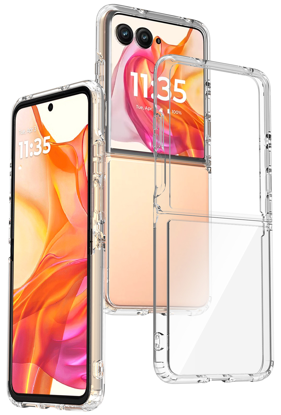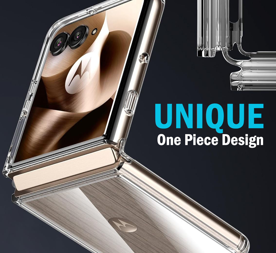 MATERIAL: This is a one-piece case that combines semi-flexible TPU trim with firm acrylic shell. The crystal clear hard backside will showcase the original design and beauty of your RAZR phone. The semi-flexible sides are made of TPU material for grip and shock absorption.