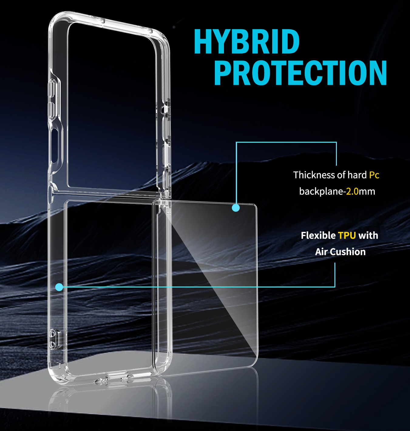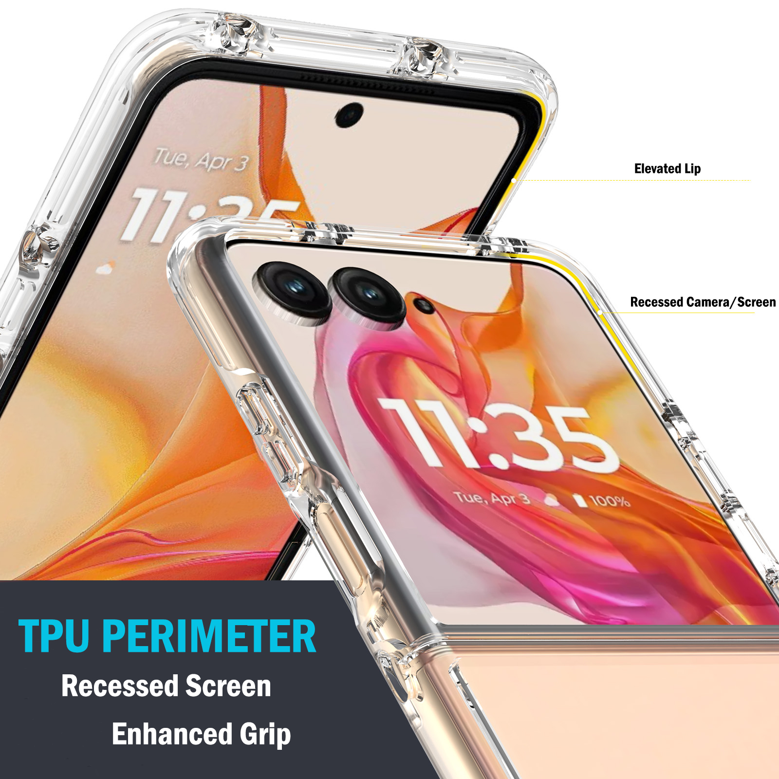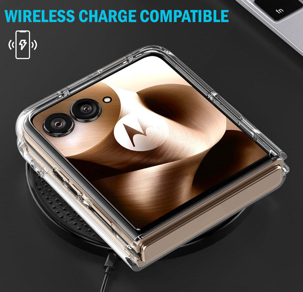 FUNCTIONALITY: The clear case is practical because it provides enhanced grip and protection without the bulkiness. This slim form-fit case has cutouts for all ports and sensors so your device remains fully functional. Flip open and closed as normal. The perimeter has the embossed mold of the volume buttons and AI button - that way they are protected and you can still feel/use them. You have direct access to touchscreen. There is an elevated lip that keeps screen and camera lens recessed. Your phone remains wireless-charge-compatible!
