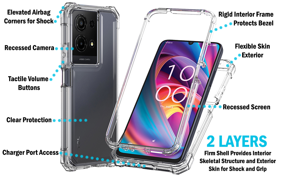 SHOCK ABSORBING LAYERS: The exterior is made of tough yet flexible TPU material that provides enhanced grip in your hand. The inner frame is made of rigid polycarbonate and this skeletal structure provides impact resistance. Features airbag design at all 4 corners - reinforced for drop/shock absorption.