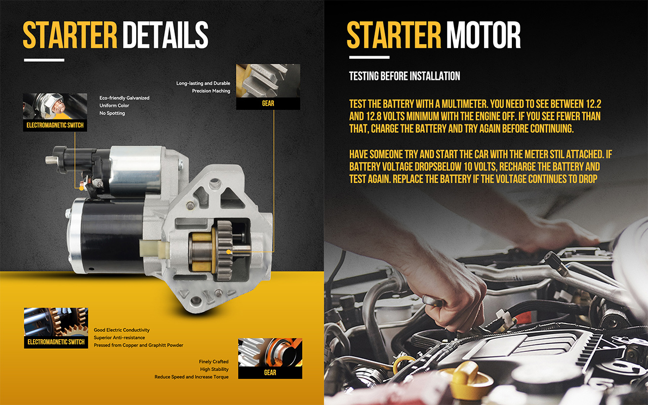 Starters manufactured under the guidelines of OE specifications and ISO Quality Standards by the professional OEM manufacturer, 100% computerized load and power testing for reliability, durability and performance. Maximum output and optimal performance assured.