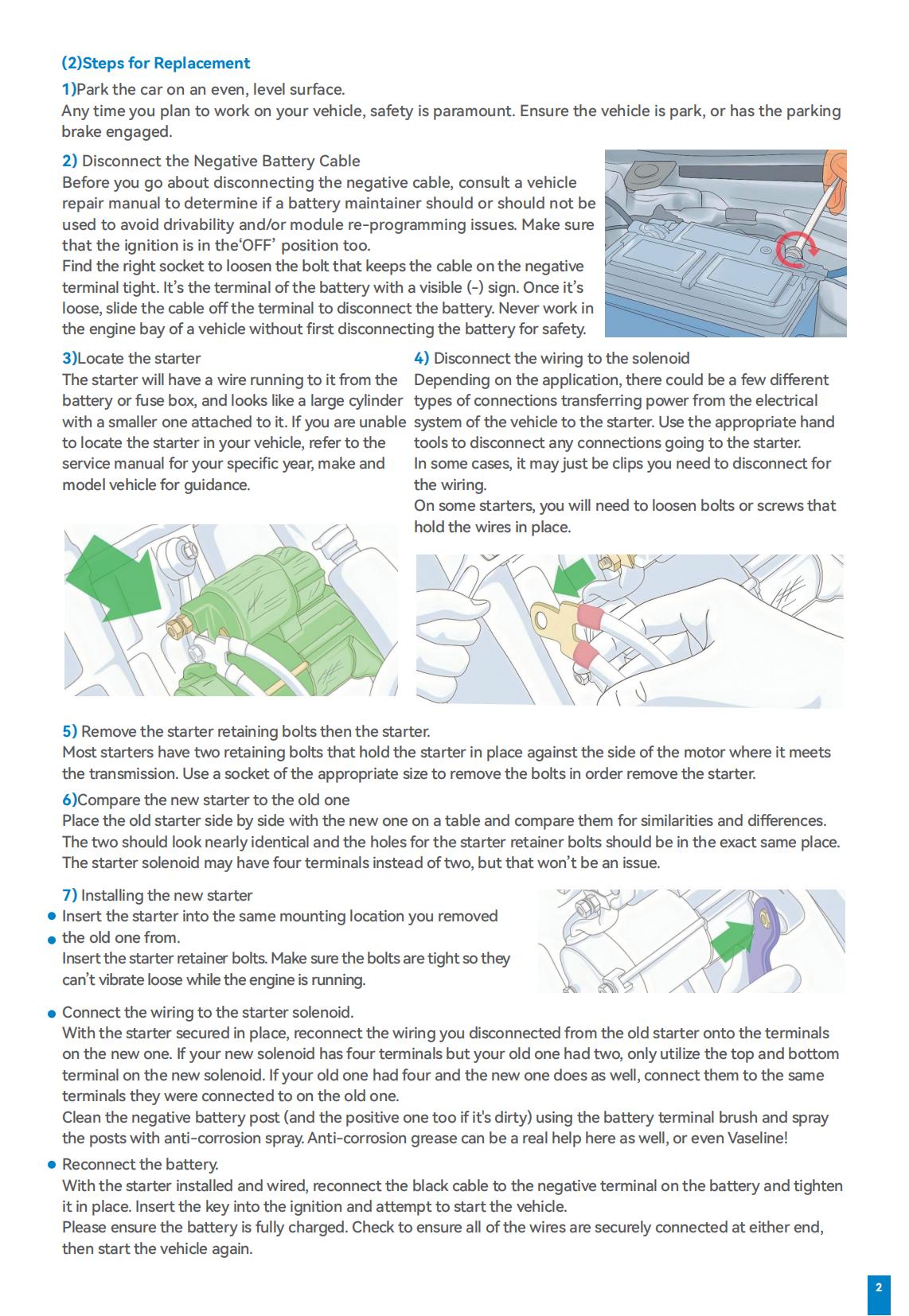 The starter motor utilizes a precision gear, shaft, and slider transmission system. It converts the motor's speed and torque into sufficient power to drive the engine, which achieving precise & quick engine start. And maintains good starting performance even under harsh conditions such as low temperature.