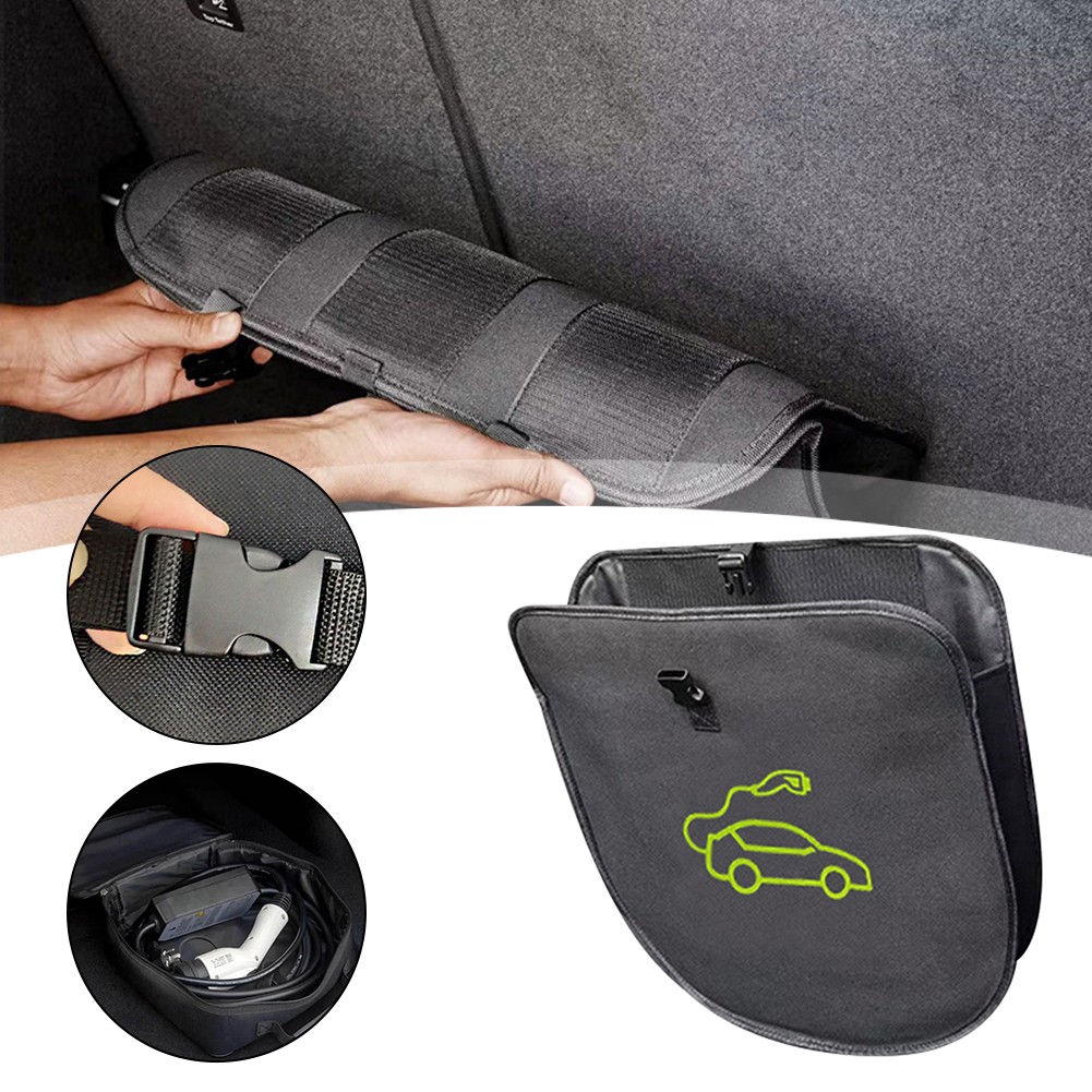 * Flexible fastening: The EV cable storage bag is designed with a buckle that allows the organizer to be easily secured to the back of the seat. There is  on the back to for ensure that the item is stable and does not shake when traveling, adding a peace of mind to your trip.