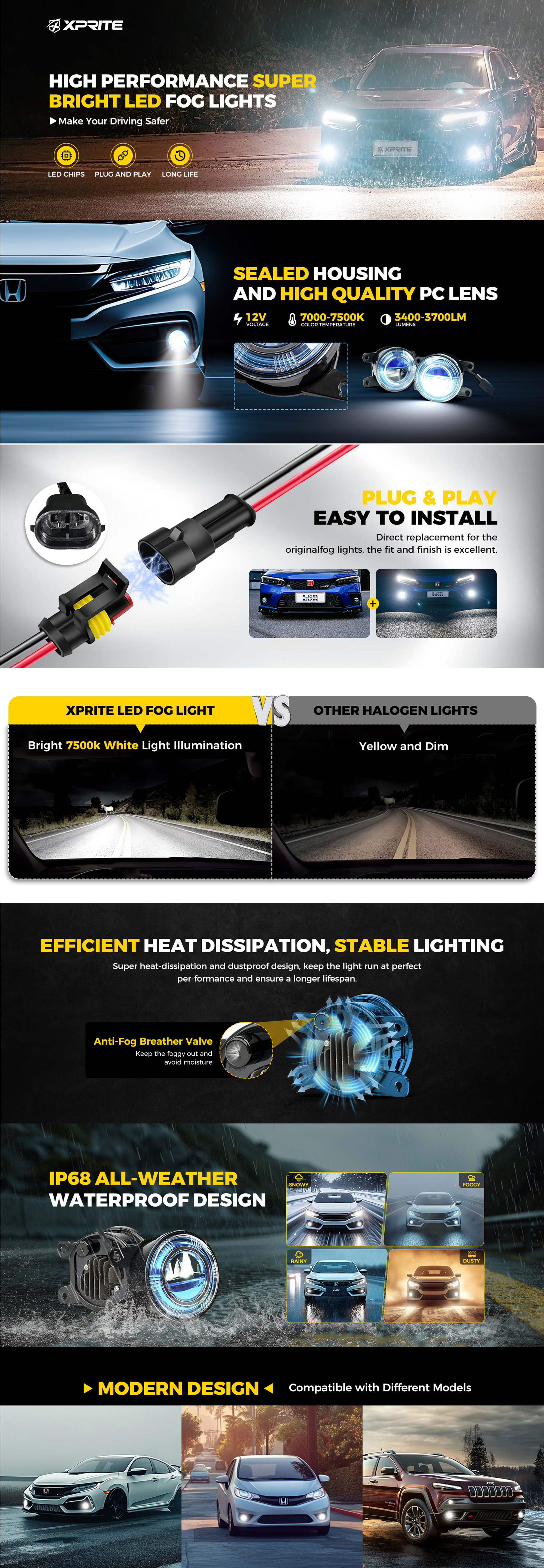-Xprite lens fog lights are compatible with 2016-2025 Honda Sedan and Hatchback