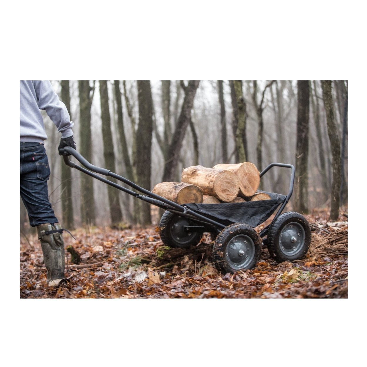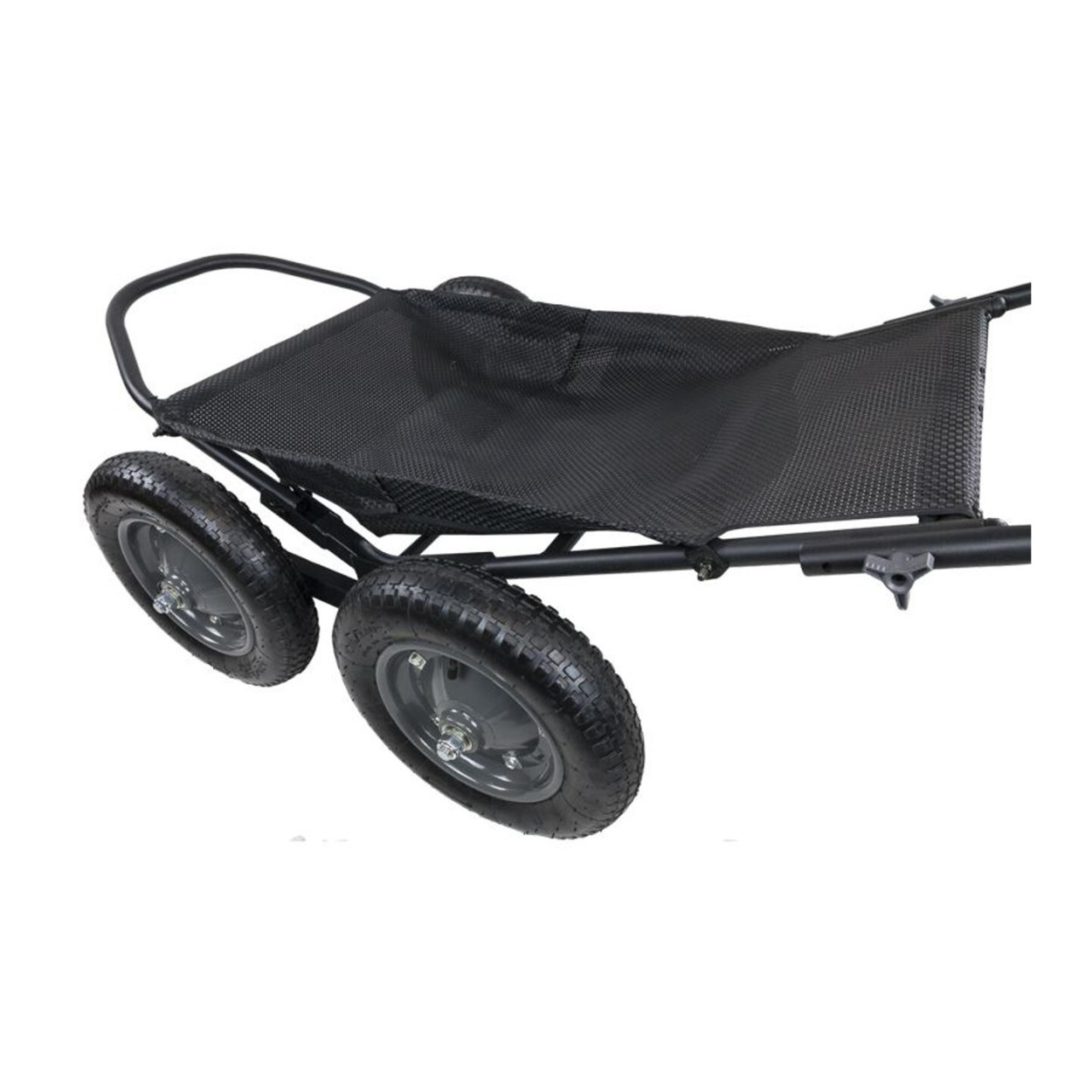 The Crawler Deer Cart brings an impressive level of strength, stability, and versatility. With Hawk's patent-pending dual rotating axles, this deer cart is easily able to crawl over and on top of large objects in its way. The four all-terrain tires and oversized tubing provide ultimate balance and weight distribution. Tires can easily do all the moving on uneven terrain, thanks to the center cart being stabilized. This will prevent shifting weight and tipping and give users a smooth pull. The provided Textilene DuraMesh sling adds versatility for hauling bait, firewood, and other heavy loads. When not in use, the handle and cart can easily fold, making it compact and easy to store or transport on the go.