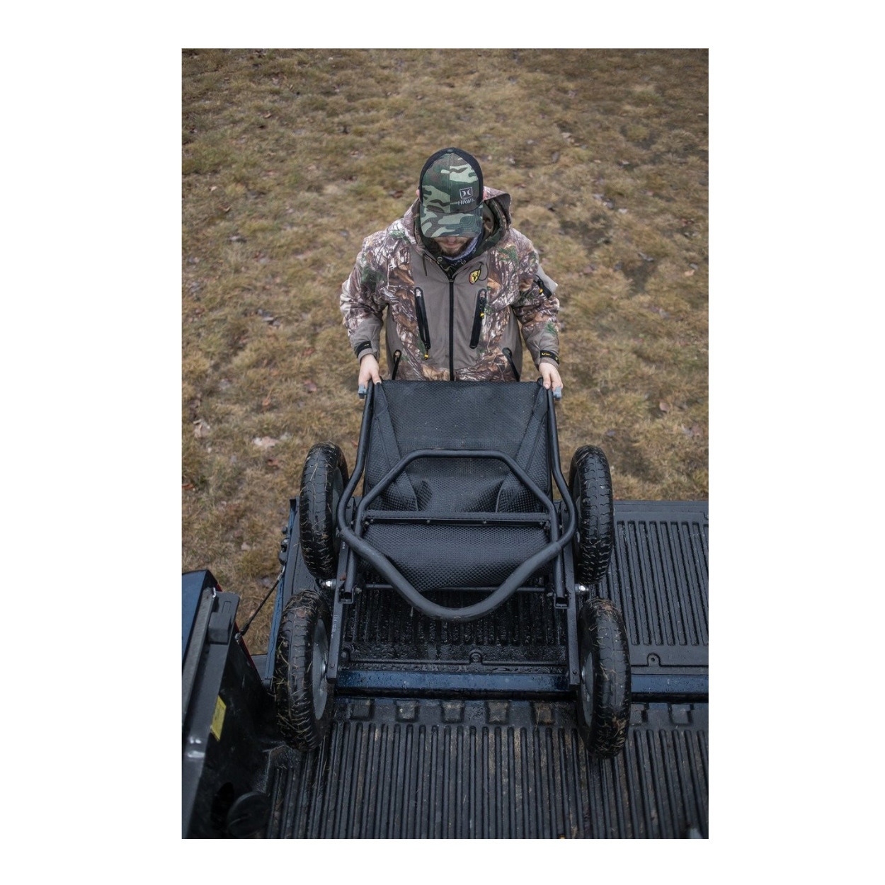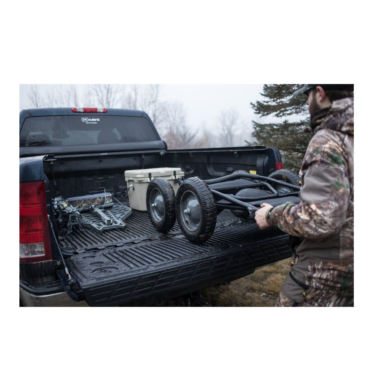 Hawk brings hunters and campers alike a versatile, multi-use cart that can handle large loads while keeping stable and tackling challenging terrains with the Crawler Deer Cart!