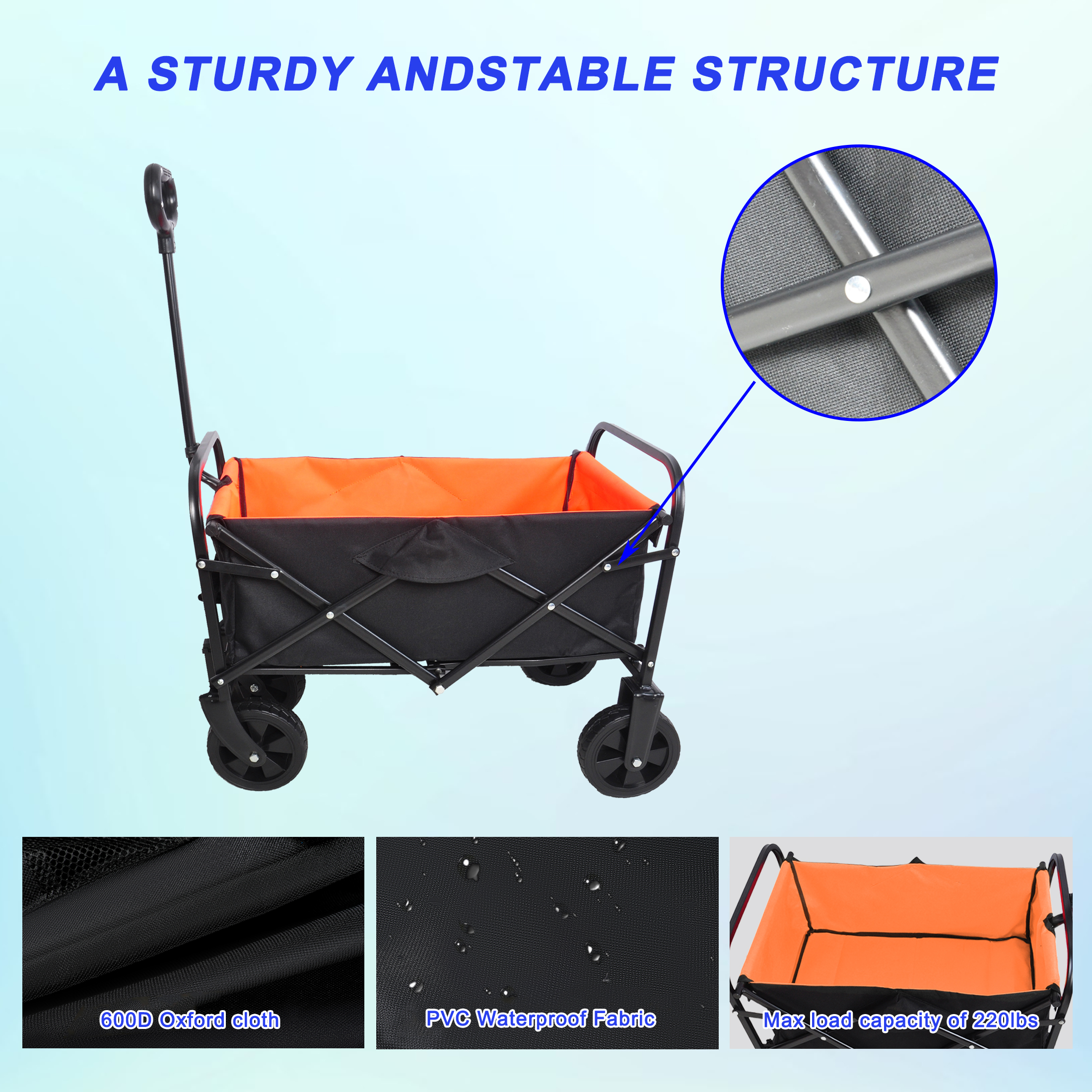 - 【HIGH QUALITY】The utility wagon cart is made of strong steel and iron frame, fixed handle is firm and practical, rubber wheel is suitable for hard road and beach. Durable and waterproof 600D Oxford cloth is easy to clean and has a long service life.
