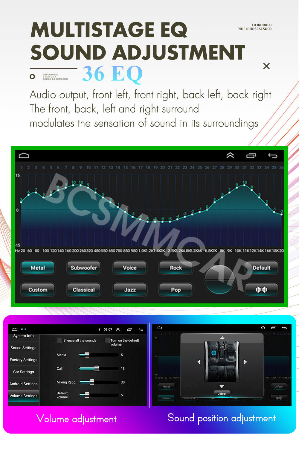 - Driving safety: Watching Video, Reversing X-mirror/Volume, Reversing Trajectory/radar Display, Rear view ruler