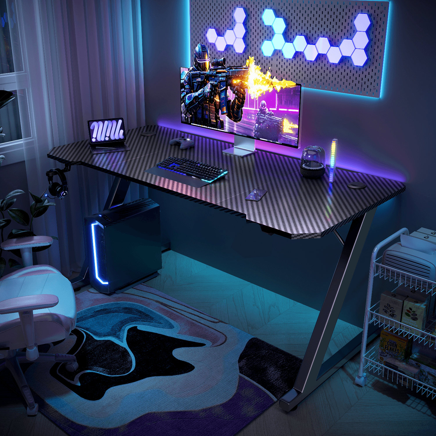 【Ultra-cooles Aussehen】Der gesamte Tisch ist aus Kohlefaser-Material gefertigt, was ihm eine dreidimensionale Textur und ein stärkeres visuelles Gefühl verleiht, und verleiht dem Tisch einen faszinierenden Glanz und eine feine Haptik. Ergonomisches Design, an die Körperkurve angepasst, verursacht auch bei langem Sitzen keine Ermüdung. Die abgerundeten Ecken sind komfortabel und beruhigend und wecken sofort Ihre Spielleidenschaft.