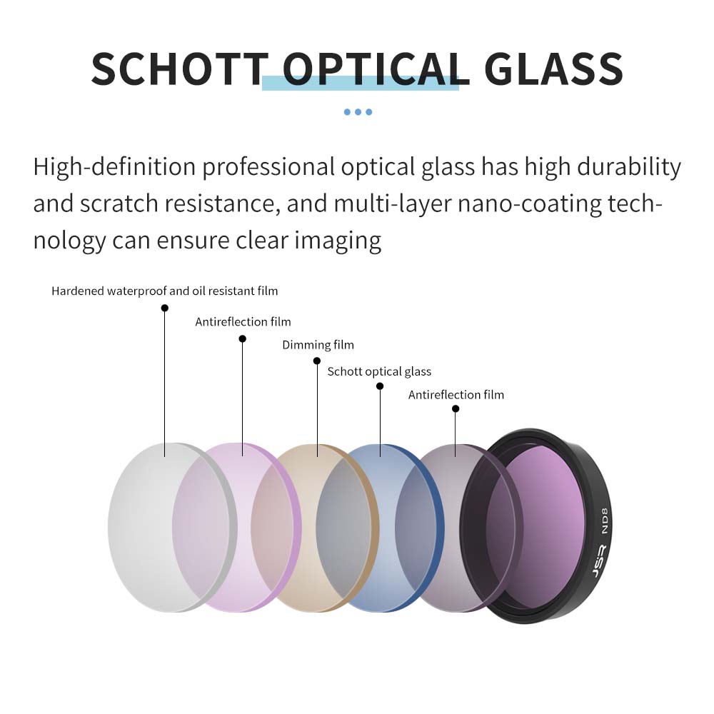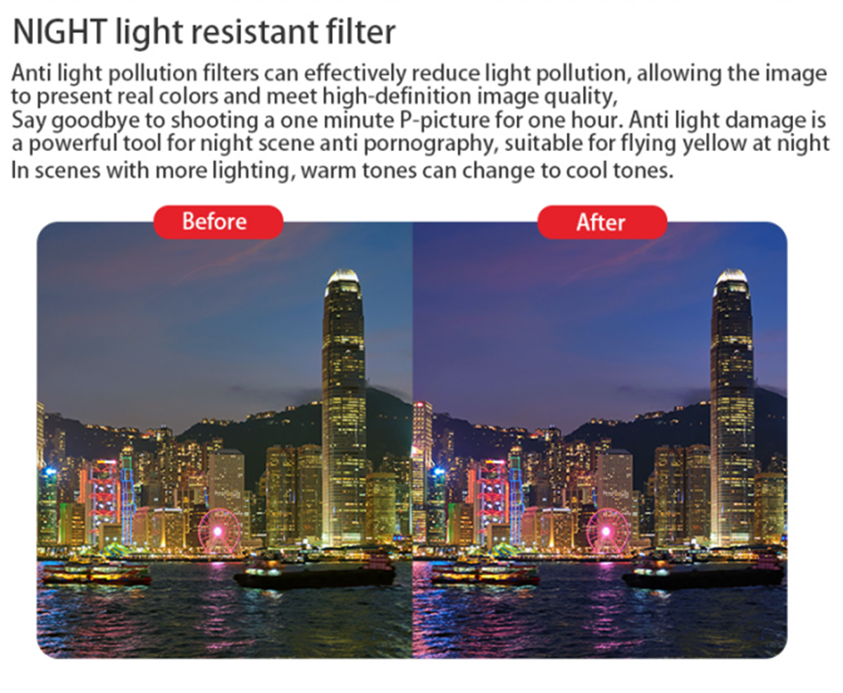 Filter: UV/CPL/ND8/ND16/ND32/ND64/ND256/ND1000/ND32PL/ND64PL/STAR resistant to light damage