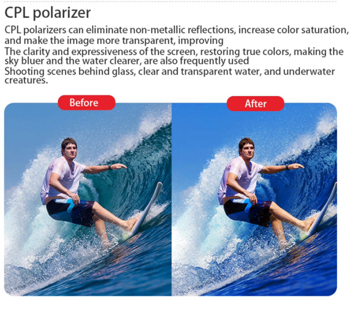 2. CPL filter: It is a commonly used filter for landscape photography, which eliminates unnecessary polarized light and makes the entire image clearer and more transparent