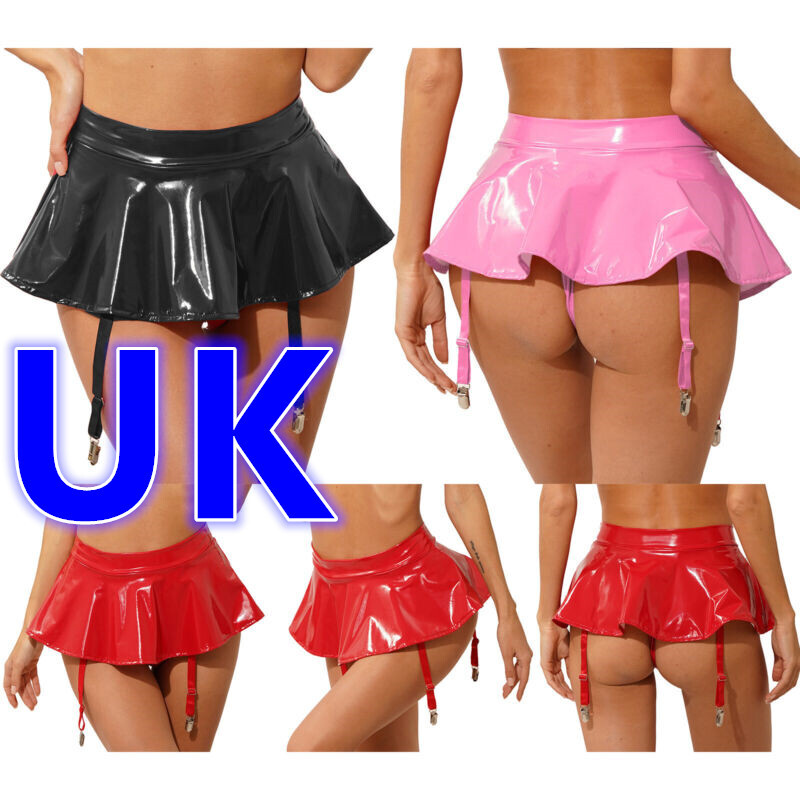 Womens Glossy Patent Leather Flared Skirt Invisible Zipper A-Line Mini Skirts.