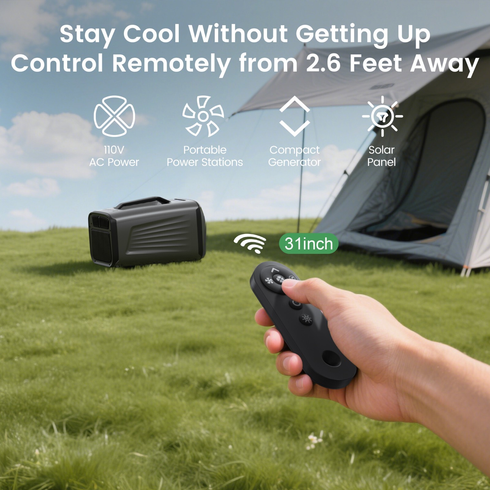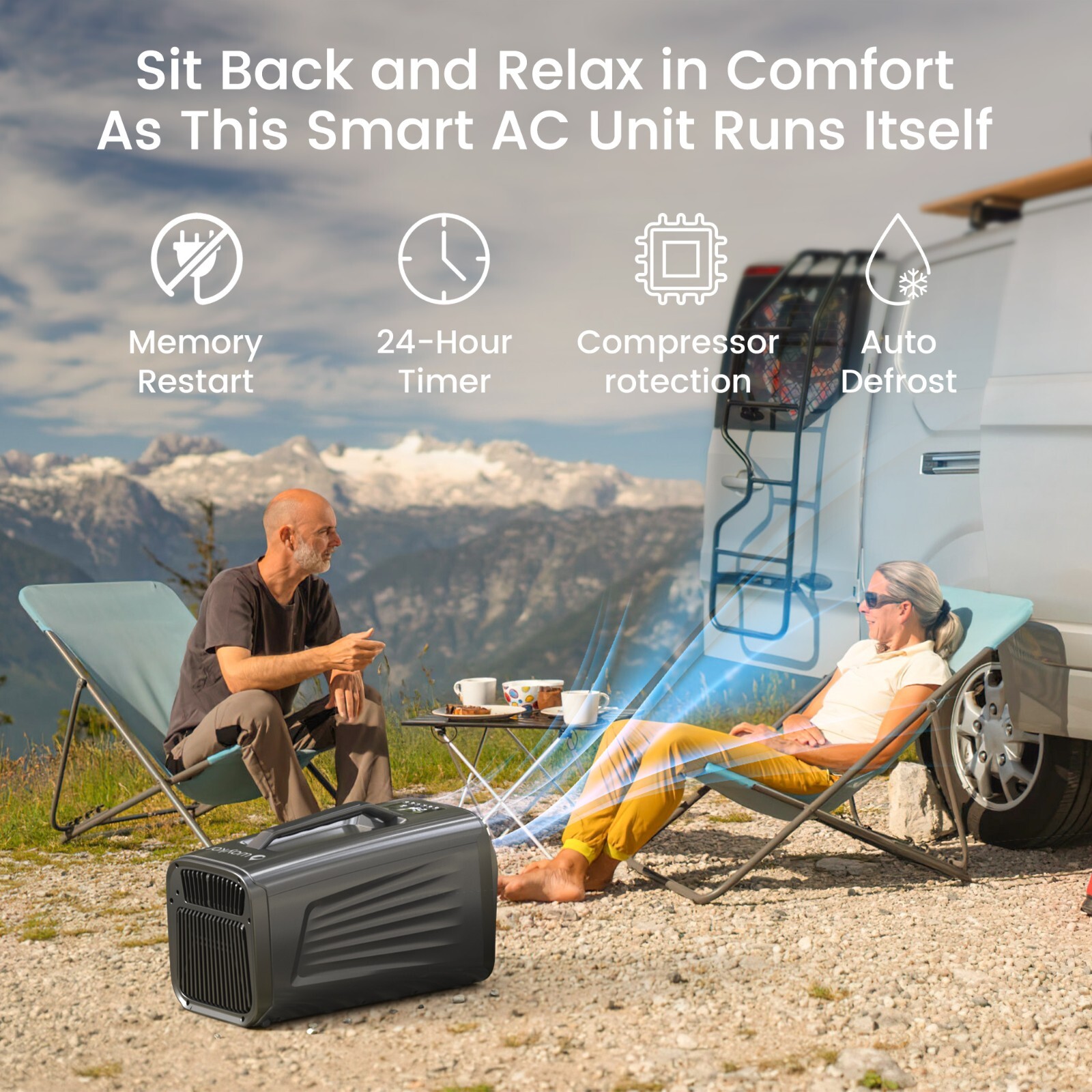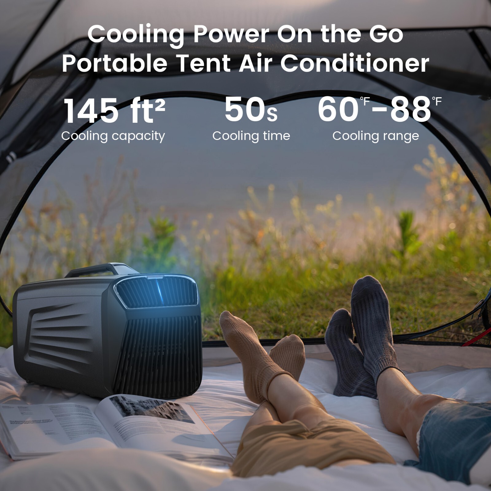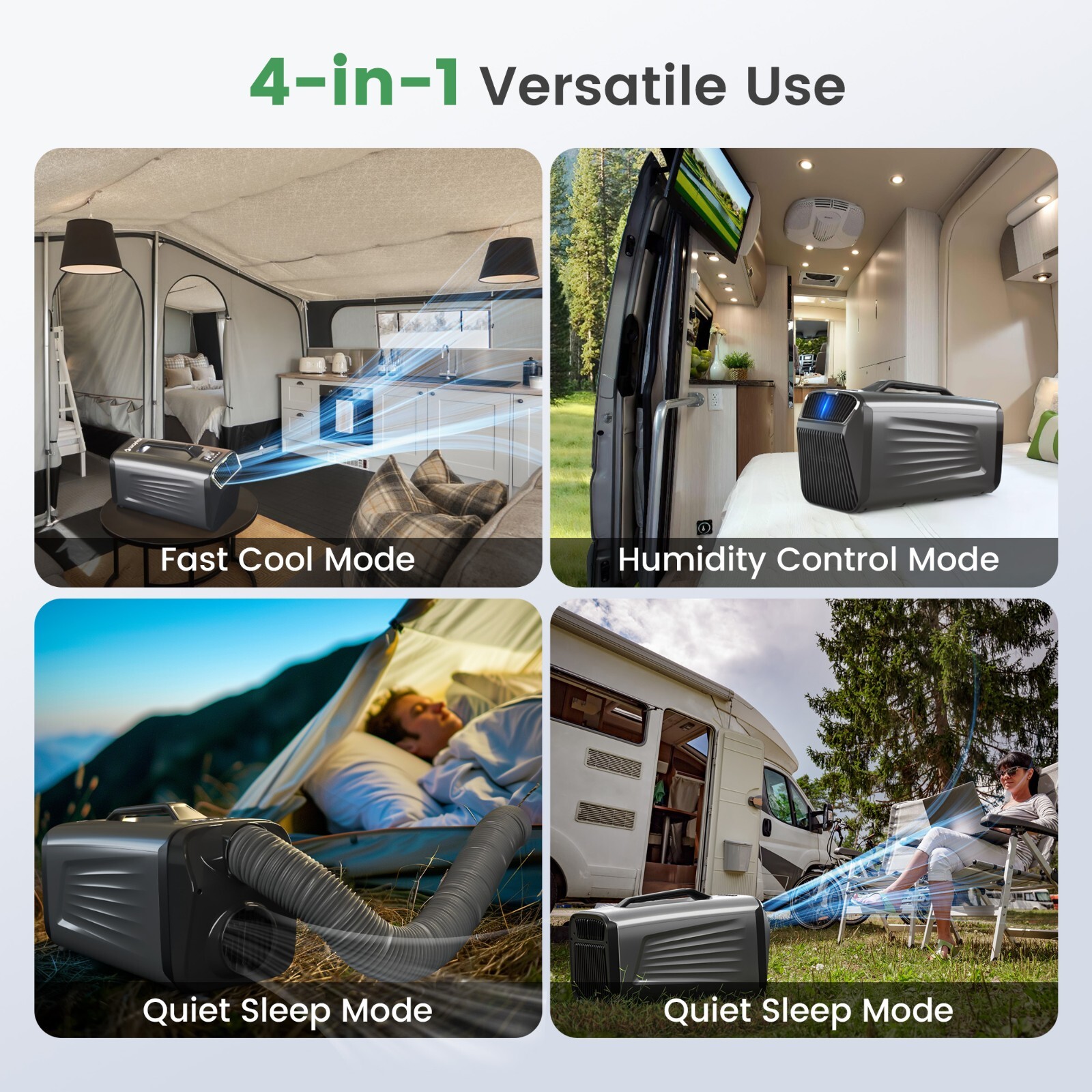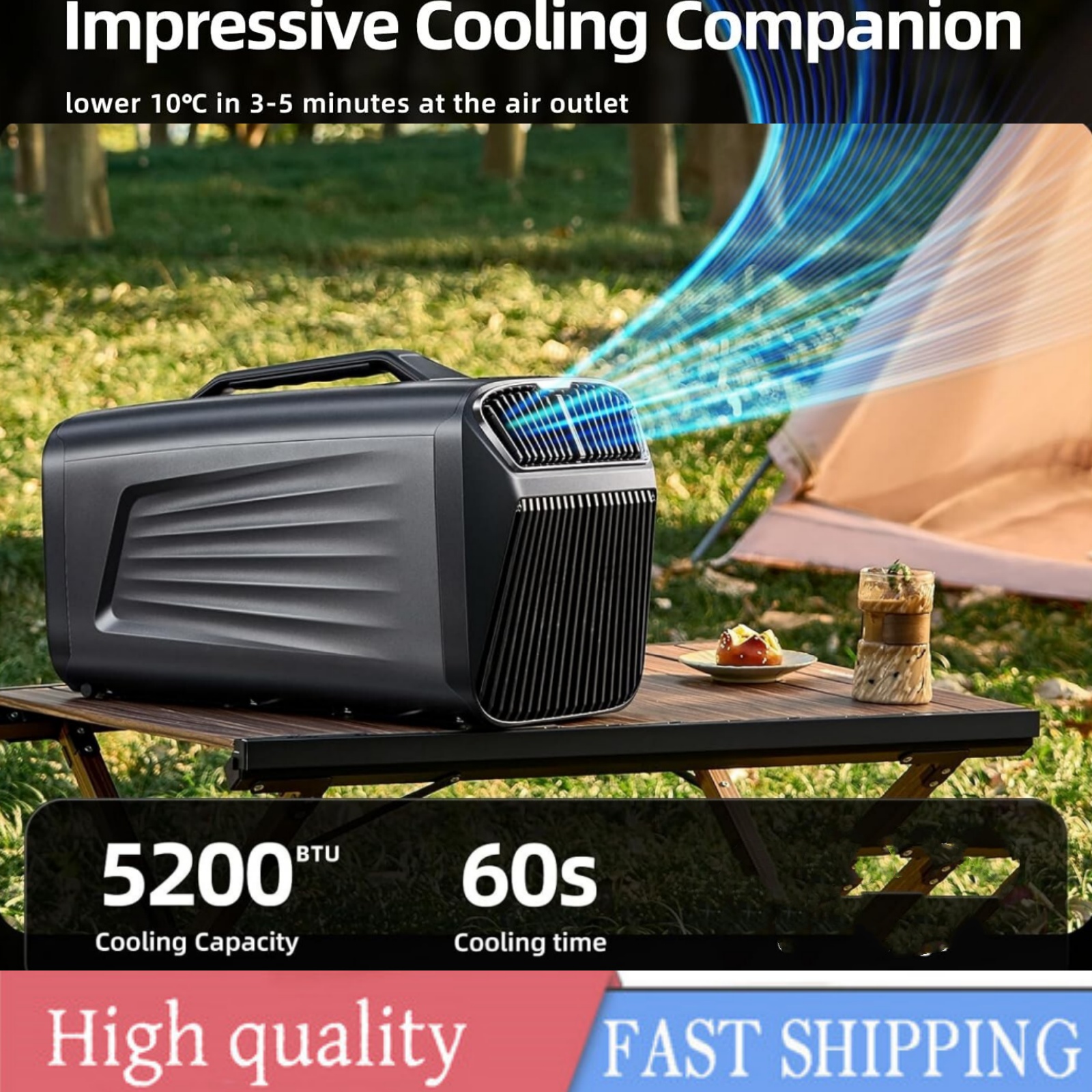 Fast Cooling: Our portable camping air conditioner Has Powerful Cooling Capacity of 5200BTU with High-end compressor.This camp AC can drop the temperature by 18℉ (10℃) in 5 mins by cooling mode.It consumes only 400w of power, which is highly energy-efficient