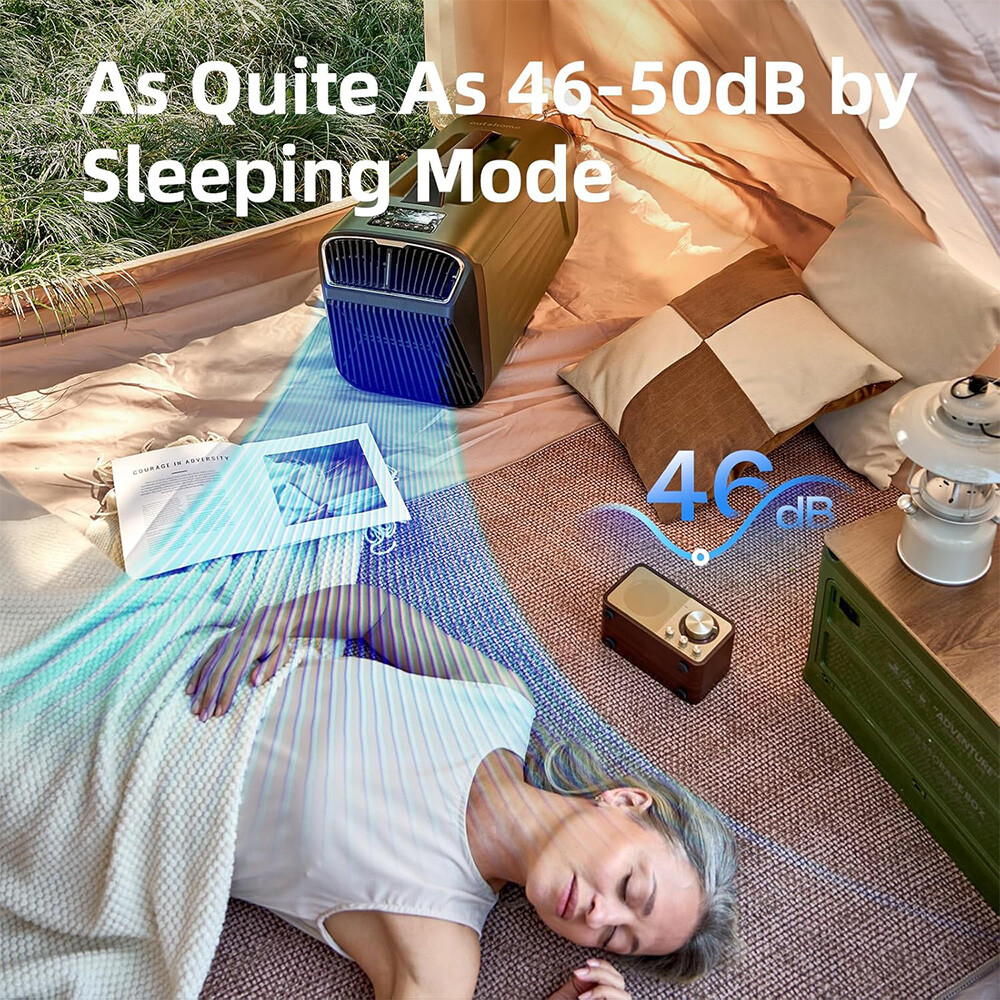 4 Modes for Any Need:This portable air conditioner offers standard Cool, Dry, Sleep and Fan settings with remote control.It features a 24-hour timer to adjust the switching off automatically. The portable camp air conditioning system has a low noise level of only 46-50dB by sleeping mode. You can hear No noise of compressor, only sound of fan. Not overly noisy for sleeping