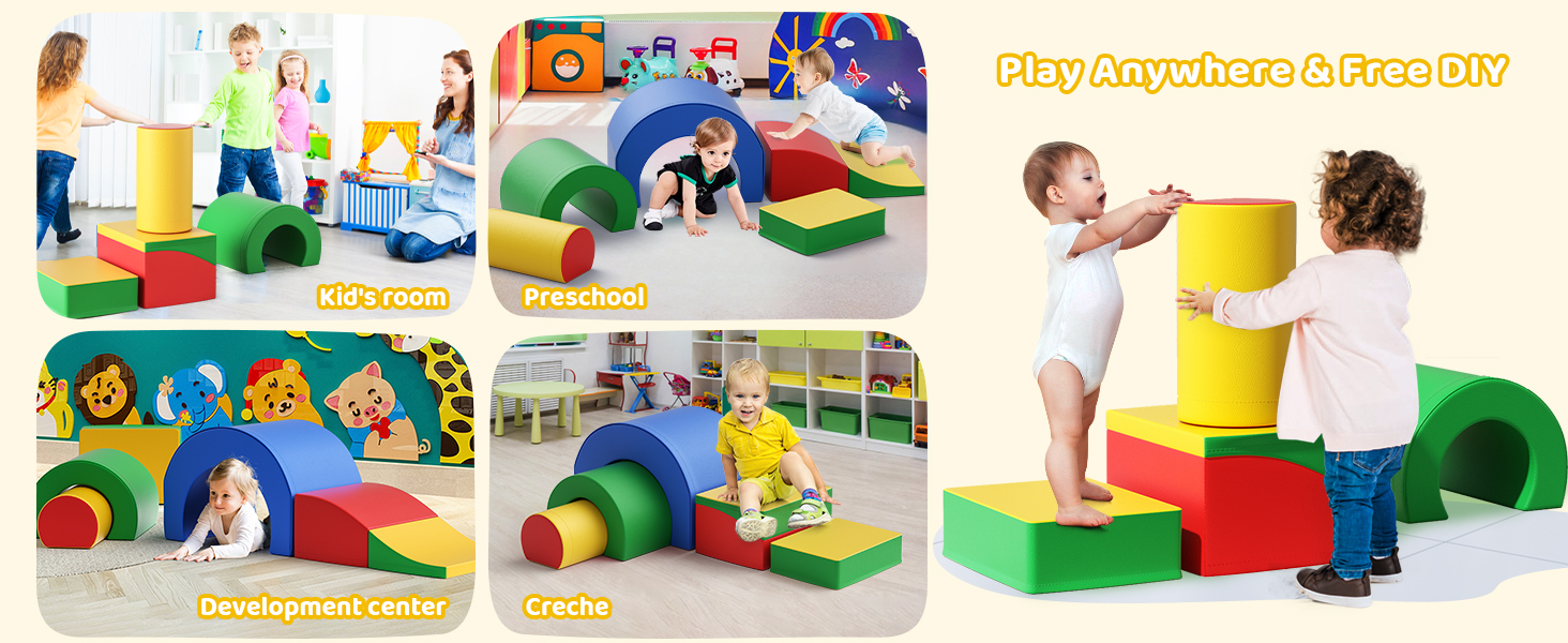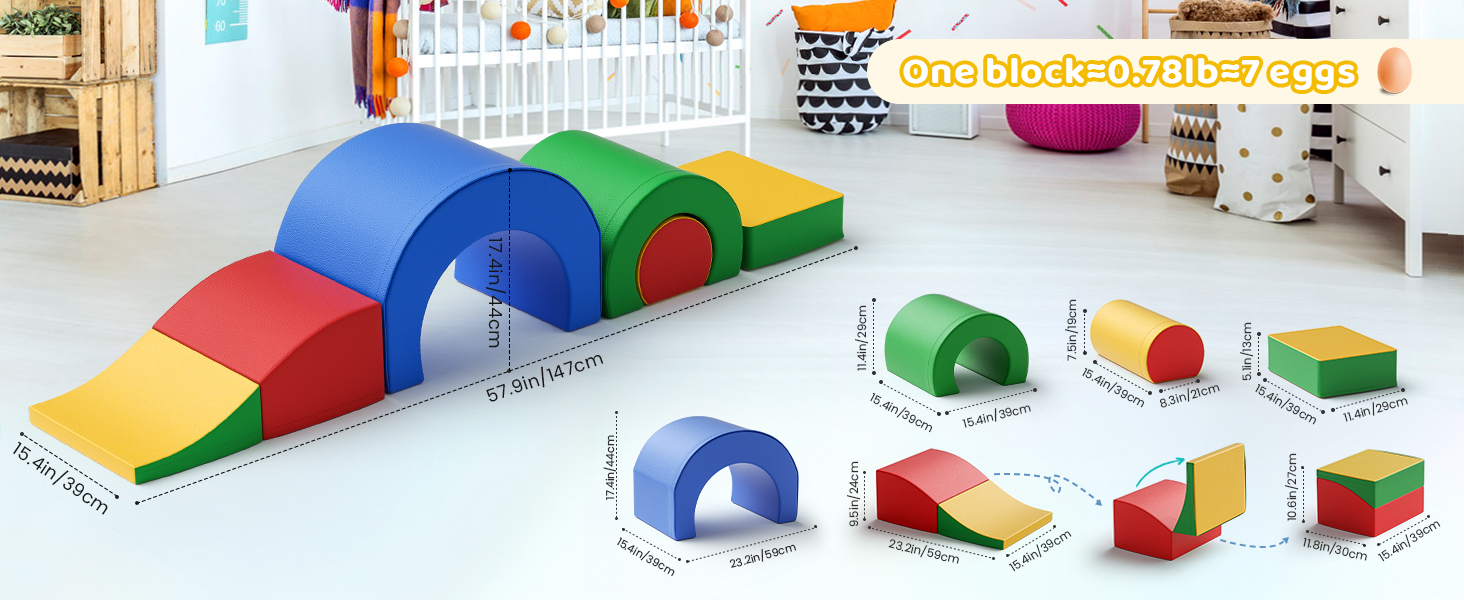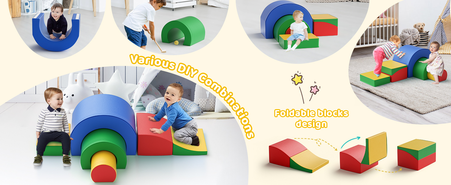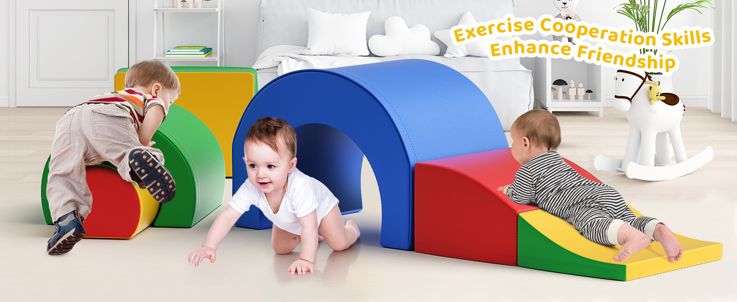 Foam Climbing Blocks, Soft Climbing Toys for Toddlers, 5 Pieces Crawl and Climb Foam Playset with Foldable Block and Tunnel, Indoor Climber Activity Play Set for Kids Age 1+(Colorful)