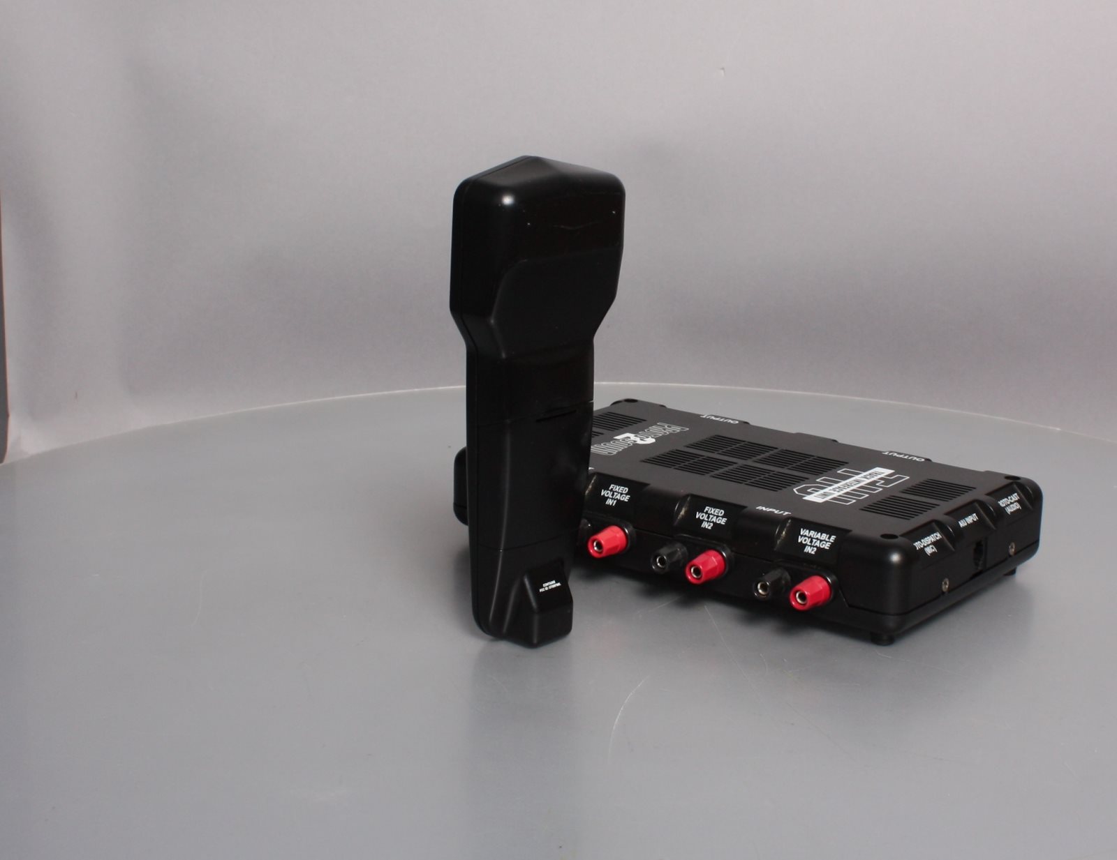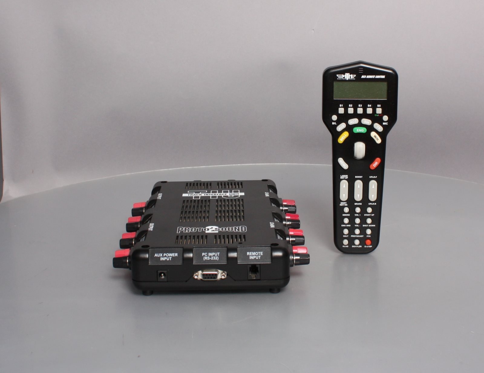 This is an MTH 50-1001 O DCS Remote Control Set. The DCS Remote Control System allows you to leave track voltage constant and control multiple Proto-Sound 2.0-equipped engines individually. Thirty-two buttons and an LCD display provide total control over Proto-Sound 2.0 features such as setting scale mph, passenger station announcements and setting multi-unit lash-ups. A single DCS Remote handheld will allow you to control Proto-Sound 2.0 locomotives in command mode, TMCC-equipped engines in command mode (when you connect a Lionel Command Base to the TIU) and all conventional 3-rail O Gauge engines at the same time. Included is a DCS remote handheld and 1 track interface unit (TIU). The range is approximately 50 feet.