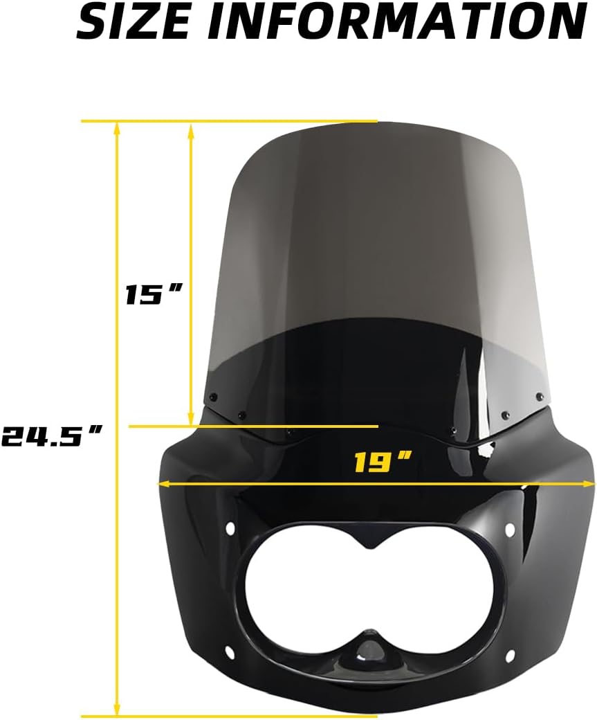 Package Includes: Headlight Fairing Cover*1 + Windscreen*1 + 48-58mm Mounting Kits*1 + Headlight Extension Block*1