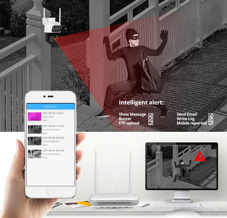 5. Advanced H.265AI/H.265+(compatible H.265/H.264) video compression, Super low rate, high definition quality of the image;