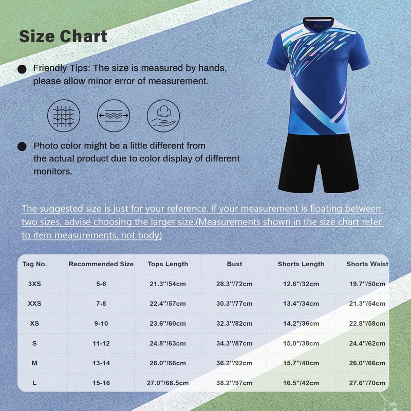 | Tag No. | Recommended Size | Tops Length | Bust | Shorts Length | Shorts Waist |