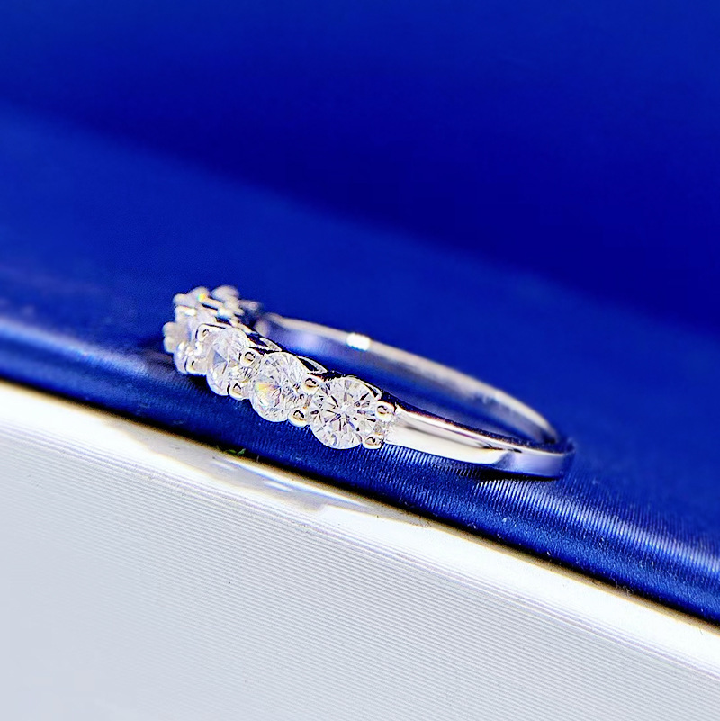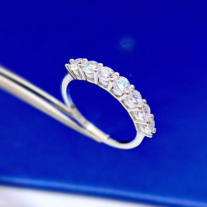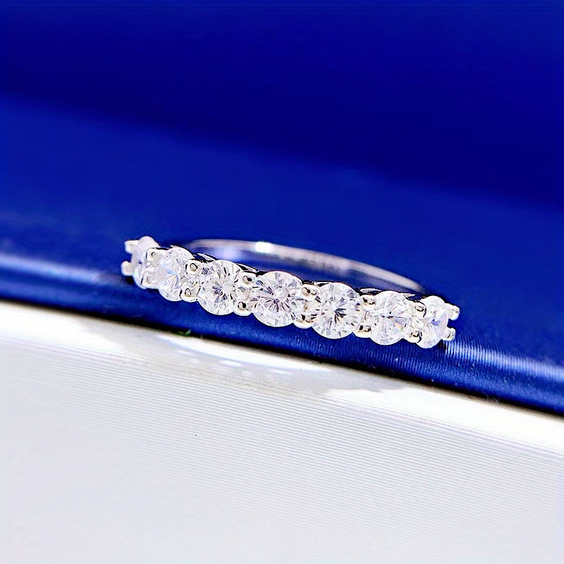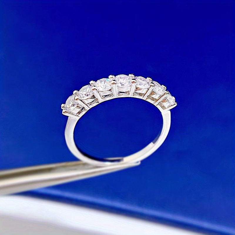 The 7-row band style features a single synthetic cubic zirconia stone in a white color.