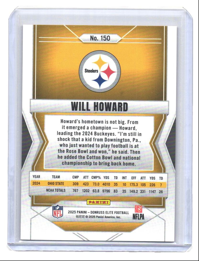 | 2025 Donruss Elite Status Metallic Orange Will Howard RC 683/849 #150 |
