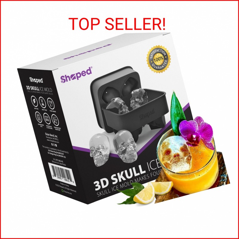 ShapedIceMolds 3D Large Skull Ice Cube Mold Tray, Round Whiskey Ice Mold with Lid for Whiskey Drinkers, Bartenders, Gift Exchanges, Home Bar Enthusiasts and Holiday Gifts