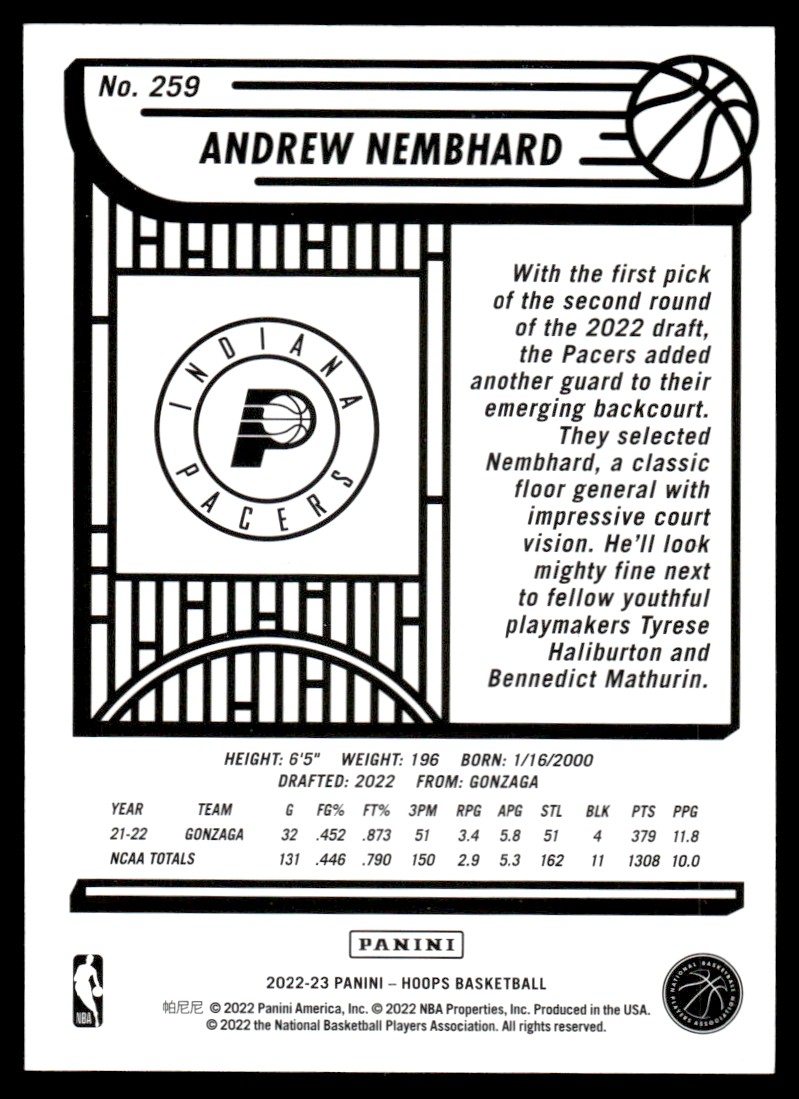 2022-23 Hoops Winter Andrew Nembhard Rookie Indiana Pacers #259