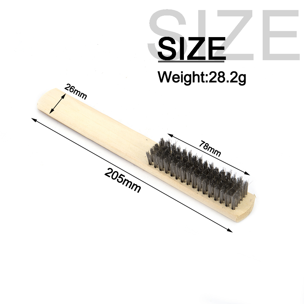 Textured wood handle 6 rows wire scratch brush, hand holding design, convenient for use.
