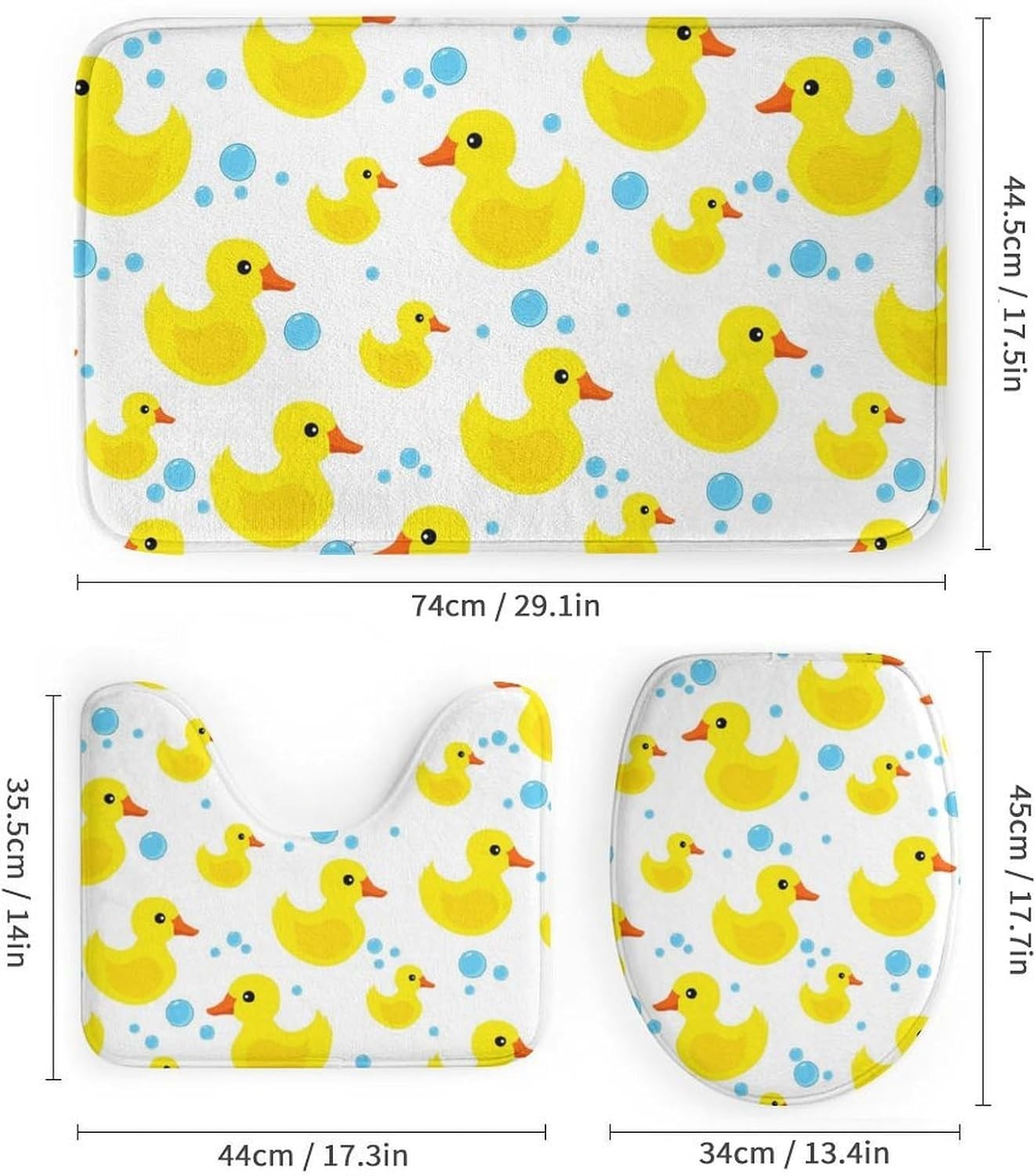 Transform your bathroom into a vibrant oasis with our delightful 4-piece Shower Curtain and Rug Set featuring adorable rubber ducks. Perfect for adding a splash of fun and color, this set is designed to cater to your every need, ensuring both elegance and functionality.