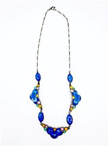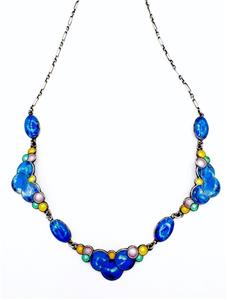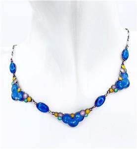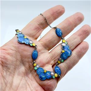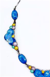Spectacular Art Deco sterling silver and enamel Eisenberg bubble necklace. Marked sterling and signed.
