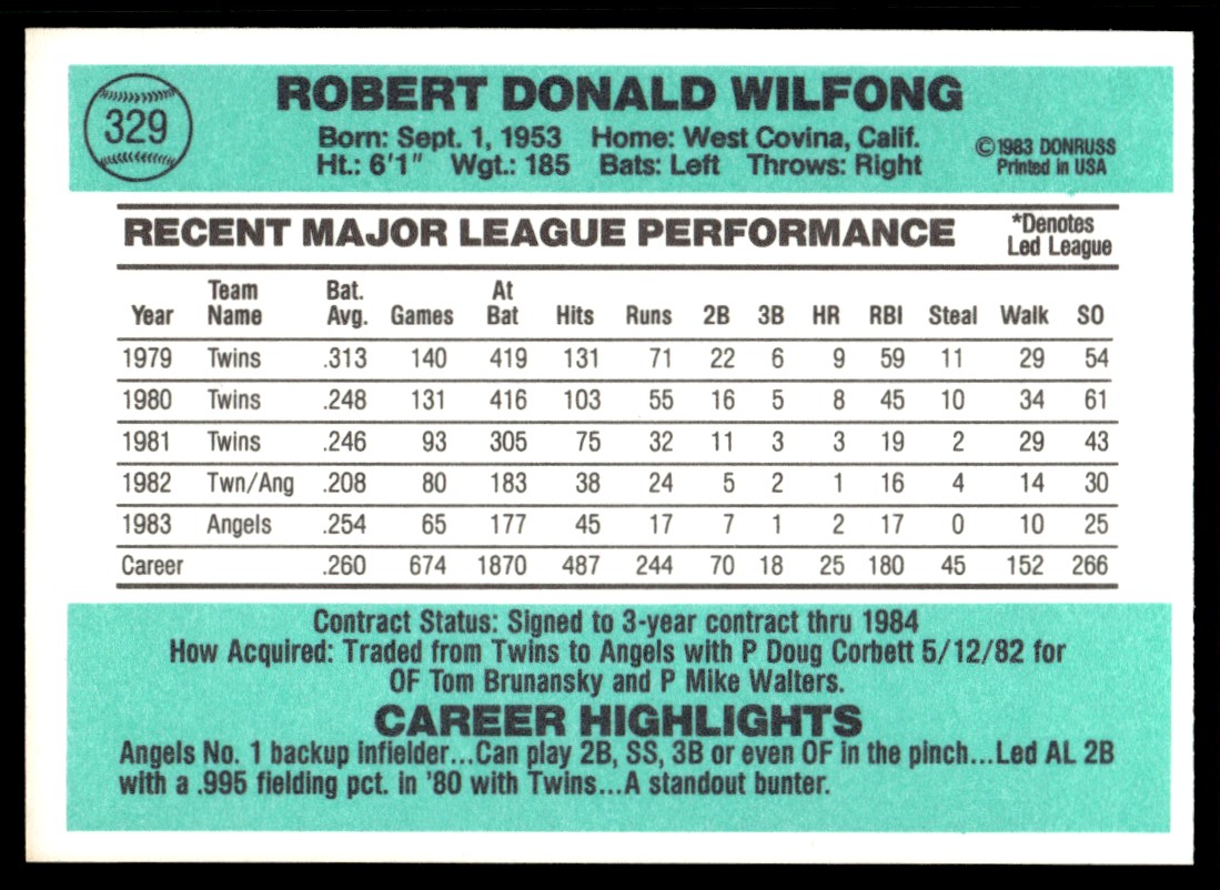 | 1984 Donruss VTG Baseball Rob Wilfong California Angels #329 |