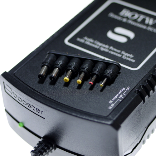 The BOTW P&P ECO is available in 11 output voltages. By clever design we have combined these 11 output voltages into 6 models. Every model – except for the 24V model - has three output settings. Also every BOTW P&P ECO is equipped with a self-locking interchangeable DC-tip system. This combination of the multi-voltage settings and the self-locking interchangeable DC-tip system makes the BOTW P&P ECO the most versatile linear audio upgrade power supply ever.