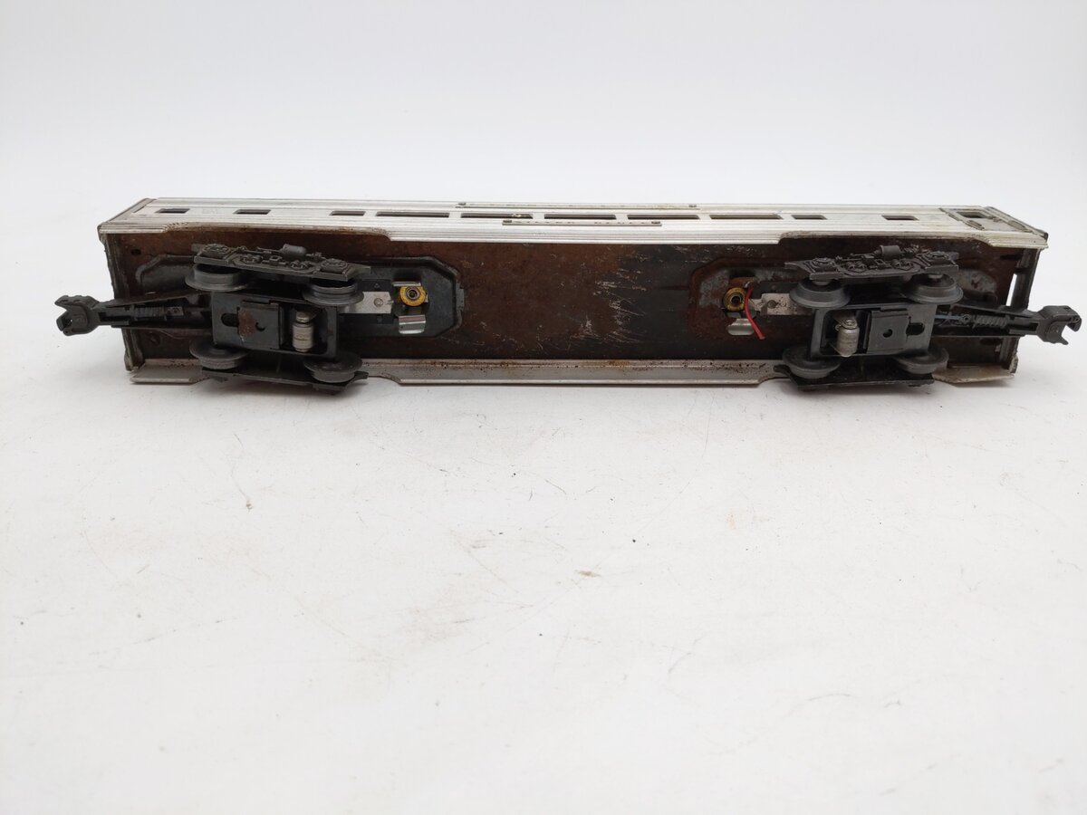 This item has been graded per TCA standards C-5: Good based on visual appearance. There are nicks, scratches, and spots of surface rust on this item. Body also shows spots of paint wear, chipping, and discoloration. When tested lighting functions, but one bulb needs to be replaced. Some cut wiring is visible on the underframe. The wheels show signs of wear. The original box is not included. The instruction manual is not included. Please check the photos for a detailed look at this item. Overall condition is Good.