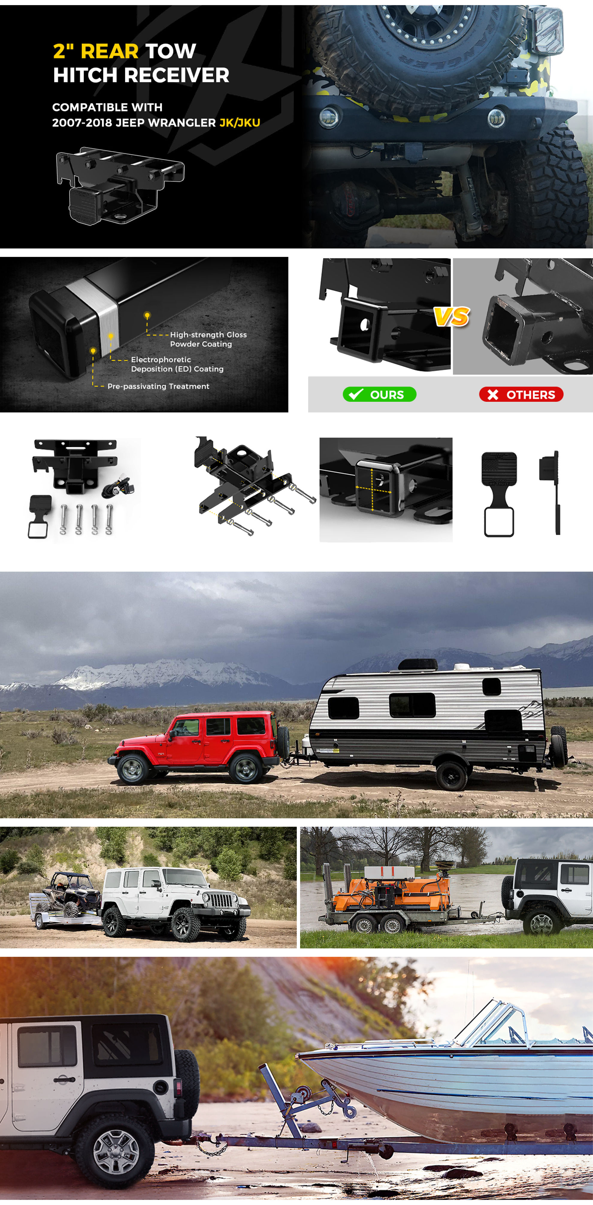 2" Tow Hitch Receiver Kit w/ Wiring Harness & Cover for 07-18 Jeep Wrangler JK