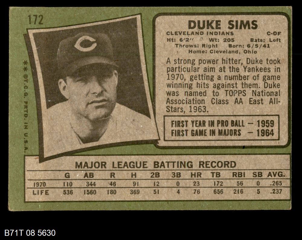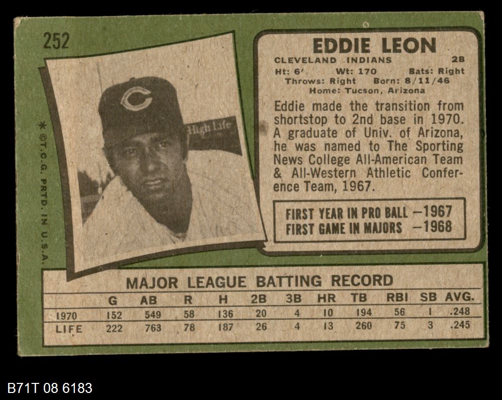 1971 Topps Cleveland Indians Near Team Set 2.5 - GD+ 6959459 (20 / 28 cards)