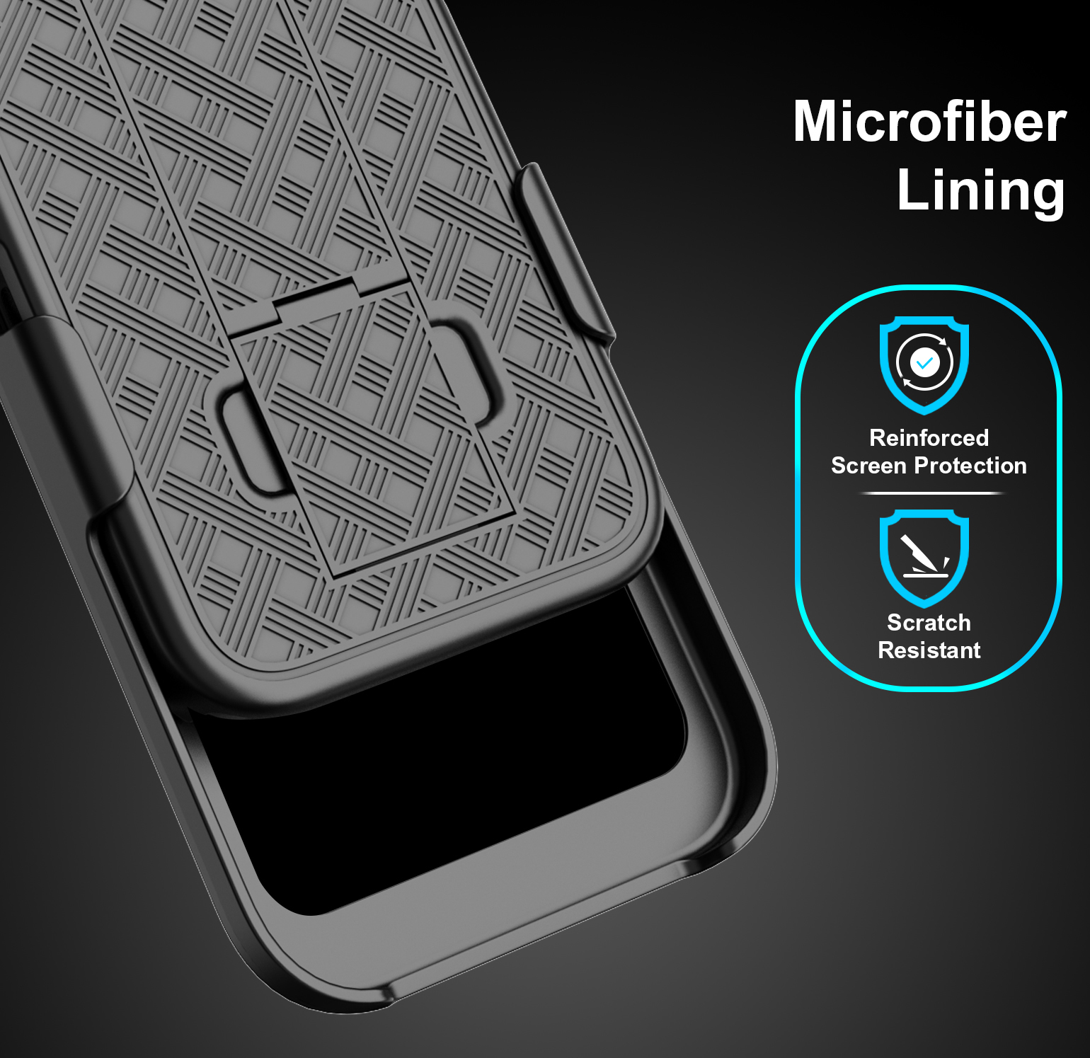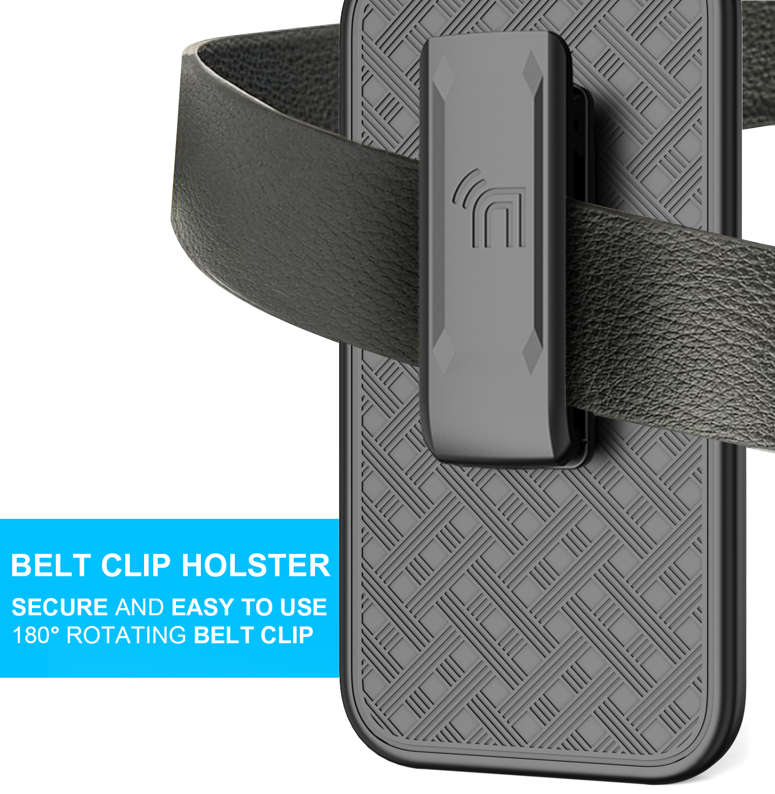 BELT CLIP: Holster is made to fit the phone with case. The interior is lined with soft micro-fiber material to ensure your screen will remain cozy and scratch free. The holster is designed to hold the phone "face-inward" so your screen is concealed and protected while on the go. Clip can turn/lock in 13 different positions and has a slim profile so it will not extend far from your waist and bump into things. Attach the clip to your side and always have quick access to your phone. Your phone slides in/out of the holster - Like an old western, you'll be quick on the draw!.