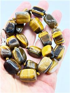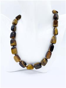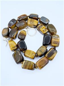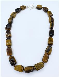 Signed SX Chunky Tiger's eye beaded necklace with sterling silver toggle clasp. Signed. Tiger's eye is said to increase courage and self-confidence and is associated with good fortune.