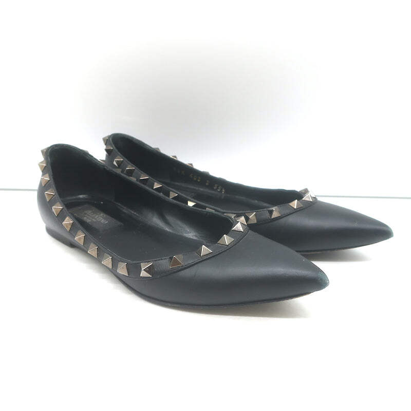 Valentino Noir Rockstud pointed-toe ballet flats in black leather, size 35.5 offer the signature Valentino mix of refined Italian craftsmanship and edgy hardware for someone seeking an iconic, wearable luxury piece at a smart price.