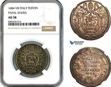 AL226, Italy, Papal States, Innocent XI, Teston 1684, Rome Mint, Silver, NGC AU58