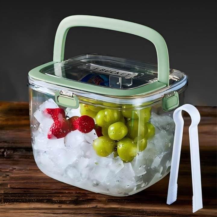 5L Portable Ice Cube Storage Green hand -hand ice bucket to send clip