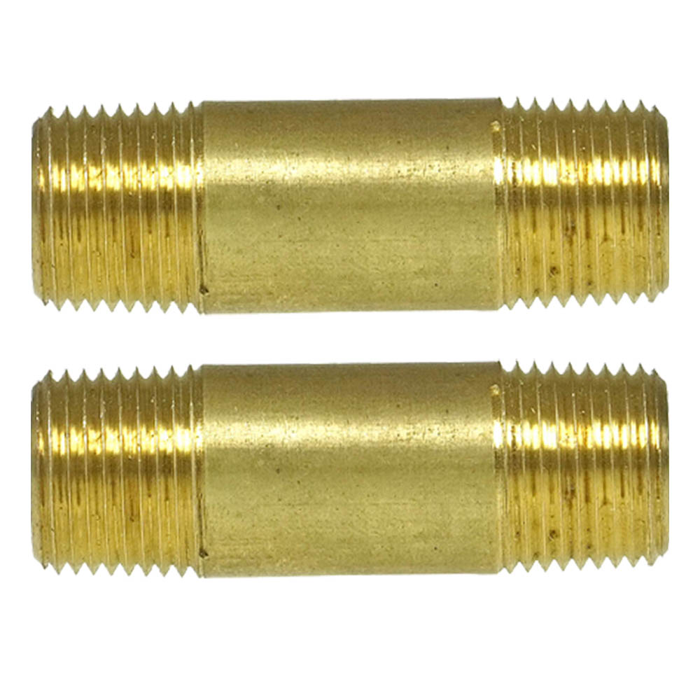 3/8" NPT x 2" Inch Long Solid Brass Nipple Extension 2-Pack 117E2-2Pack