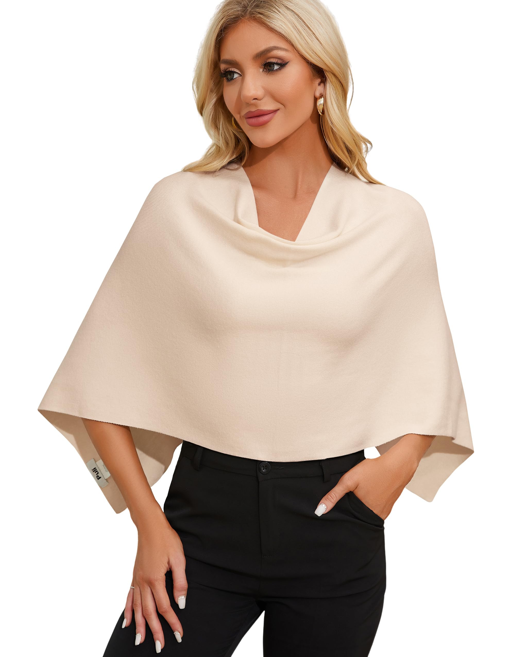 Fashion Women Capri Ponchos Soft Knit Versatile Shawls Wrap Cowl Neck Poncho Short Tops